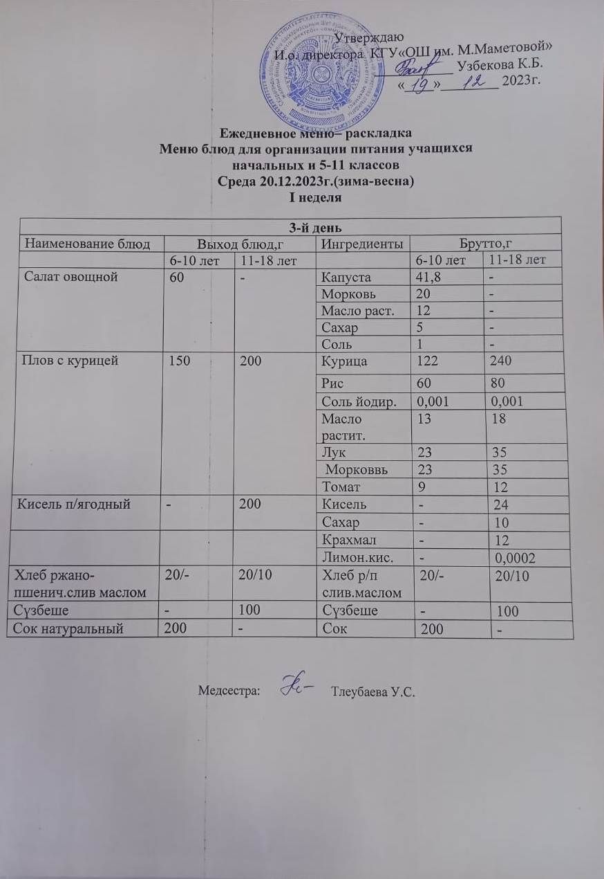 МЕНЮ ДЛЯ ОРГАНИЗАЦИИ БЕСПЛАТНОГО ПИТАНИЯ УЧАЩИХСЯ ДЛЯ НАЧАЛЬНЫХ КЛАССОВ И 5 - 11 КЛАССОВ СОЦИАЛЬНЫХ ДЕТЕЙ НА 20.12.2023