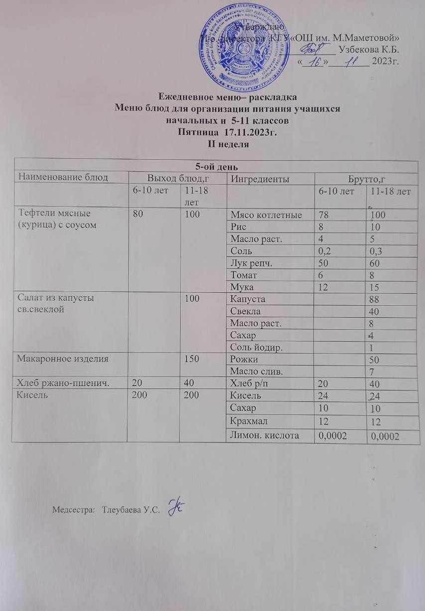 16.11.2023 БАСТАУЫШ СЫНЫПТАР МЕН 5 – 11 СЫНЫПТЫҢ ӘЛЕУМЕТТІК ОСАЛ ТОП ОҚУШЫЛАРЫНЫҢ ТЕГІН ТАМАҚТАНУЫН ҰЙЫМДАСТЫРУҒА АРНАЛҒАН АС МӘЗІРІ