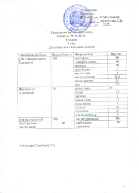 2022 - 2023 ОҚУ ЖЫЛЫНА АРАНЛҒАН БІР РЕТТІК ЫСТЫҚ ТАМАҚТАНУ МӘЗІРІ