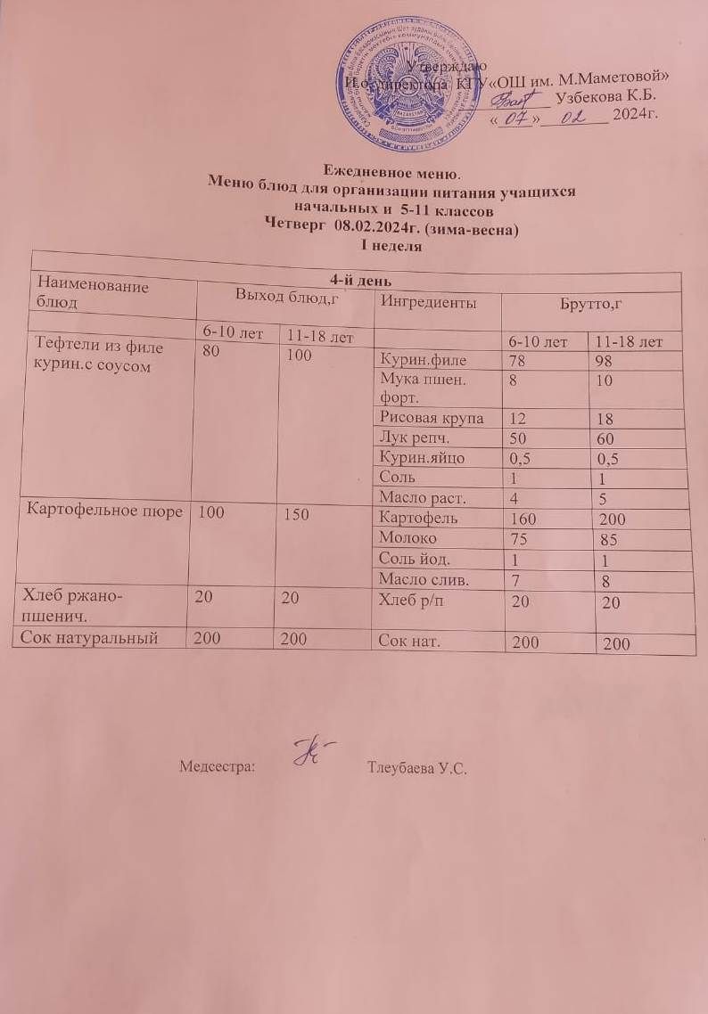 МЕНЮ ДЛЯ ОРГАНИЗАЦИИ БЕСПЛАТНОГО ПИТАНИЯ УЧАЩИХСЯ ДЛЯ НАЧАЛЬНЫХ КЛАССОВ И 5 - 11 КЛАССОВ СОЦИАЛЬНЫХ ДЕТЕЙ НА 08.02.2024