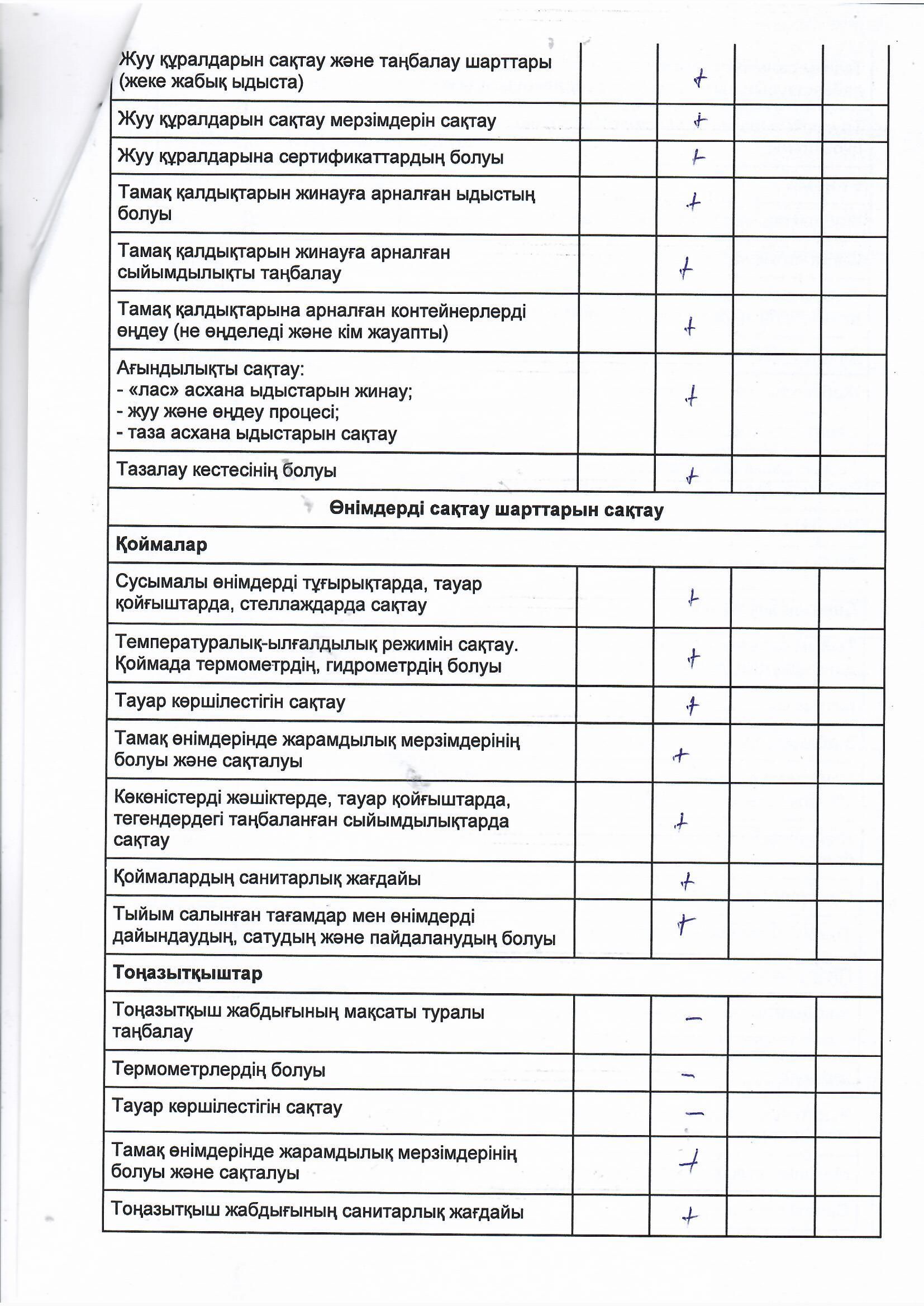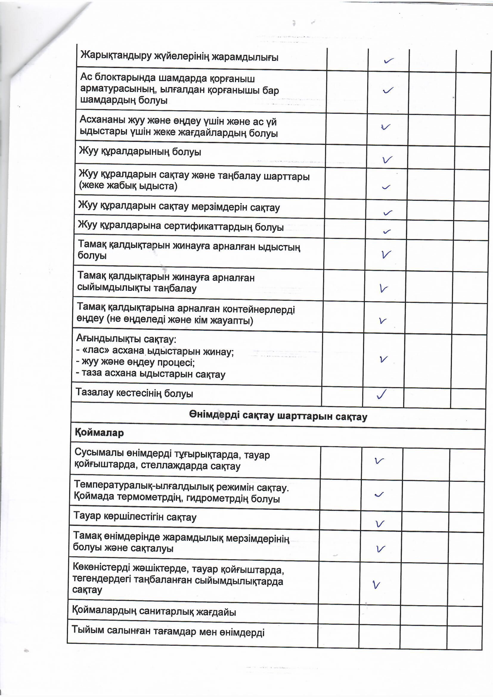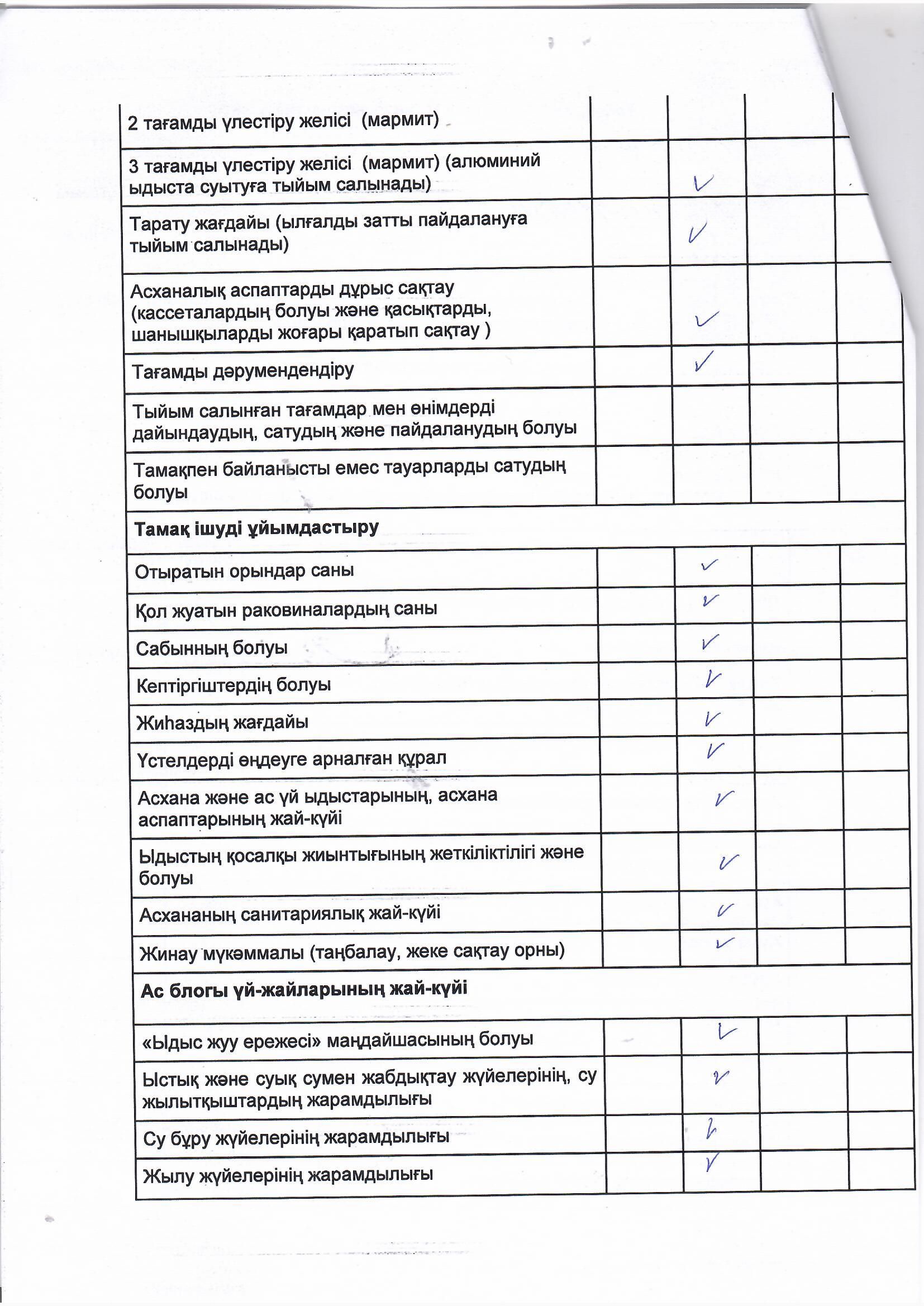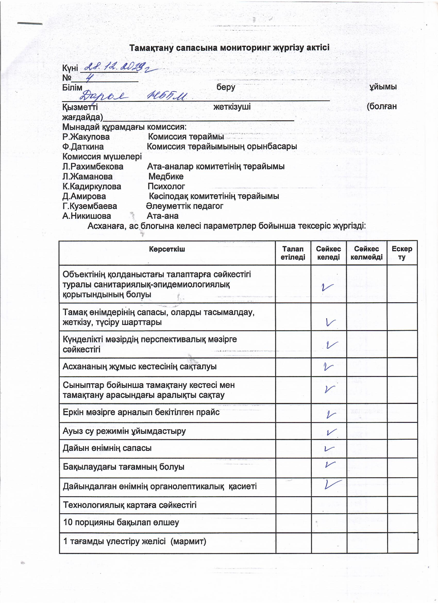 2023 жылдың 28 желтоқсан күні бракераж комиссиясы тамақтану сапасына мониторинг актісін жүргізді