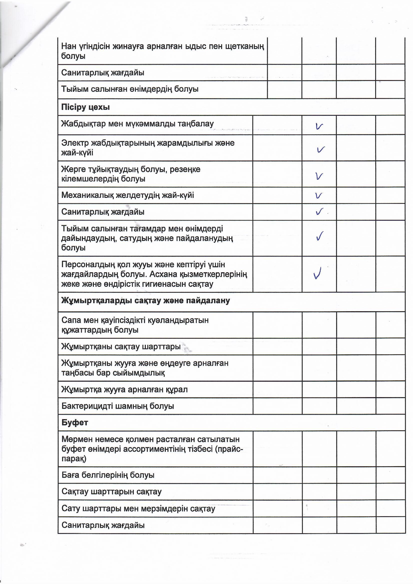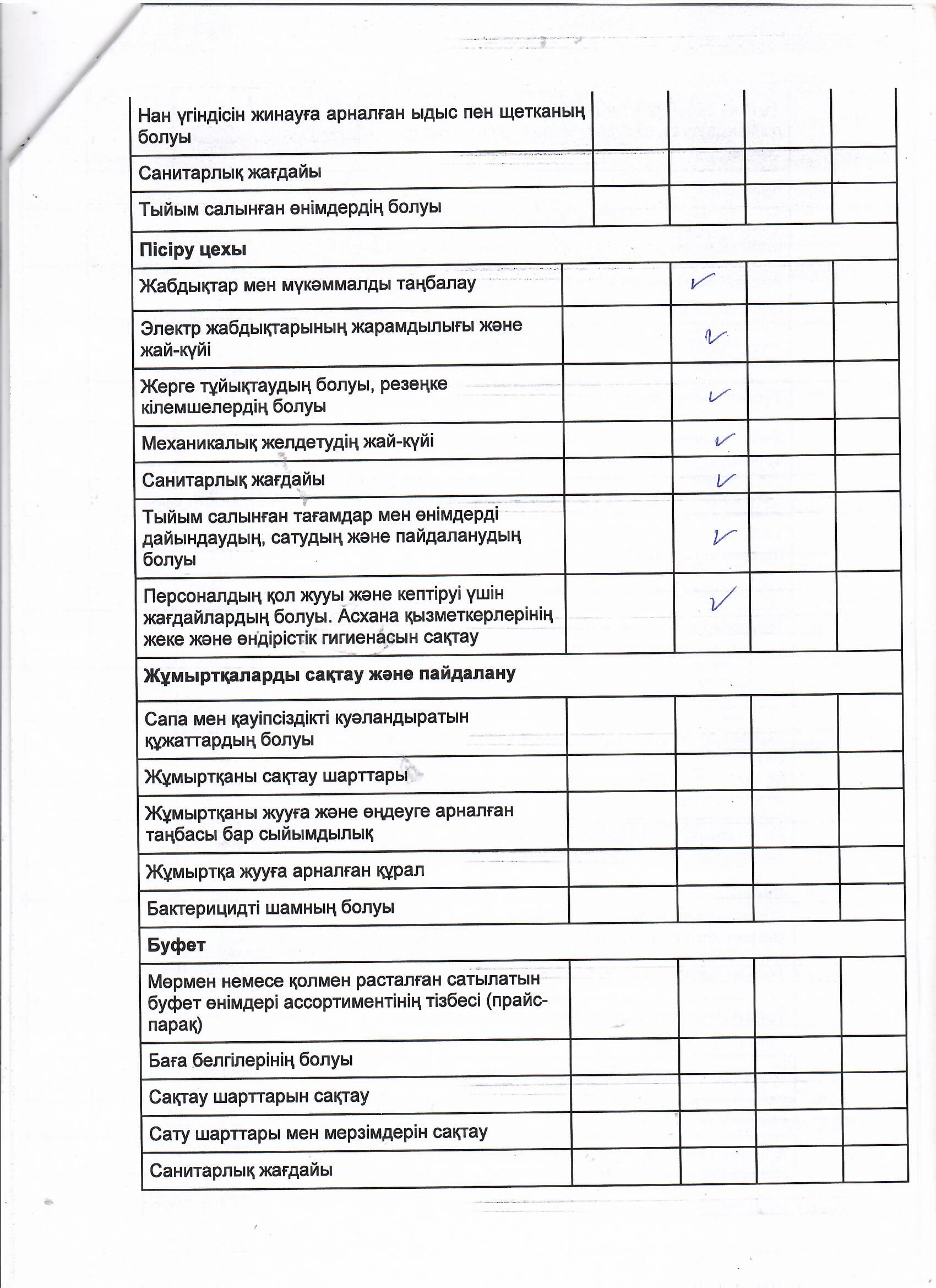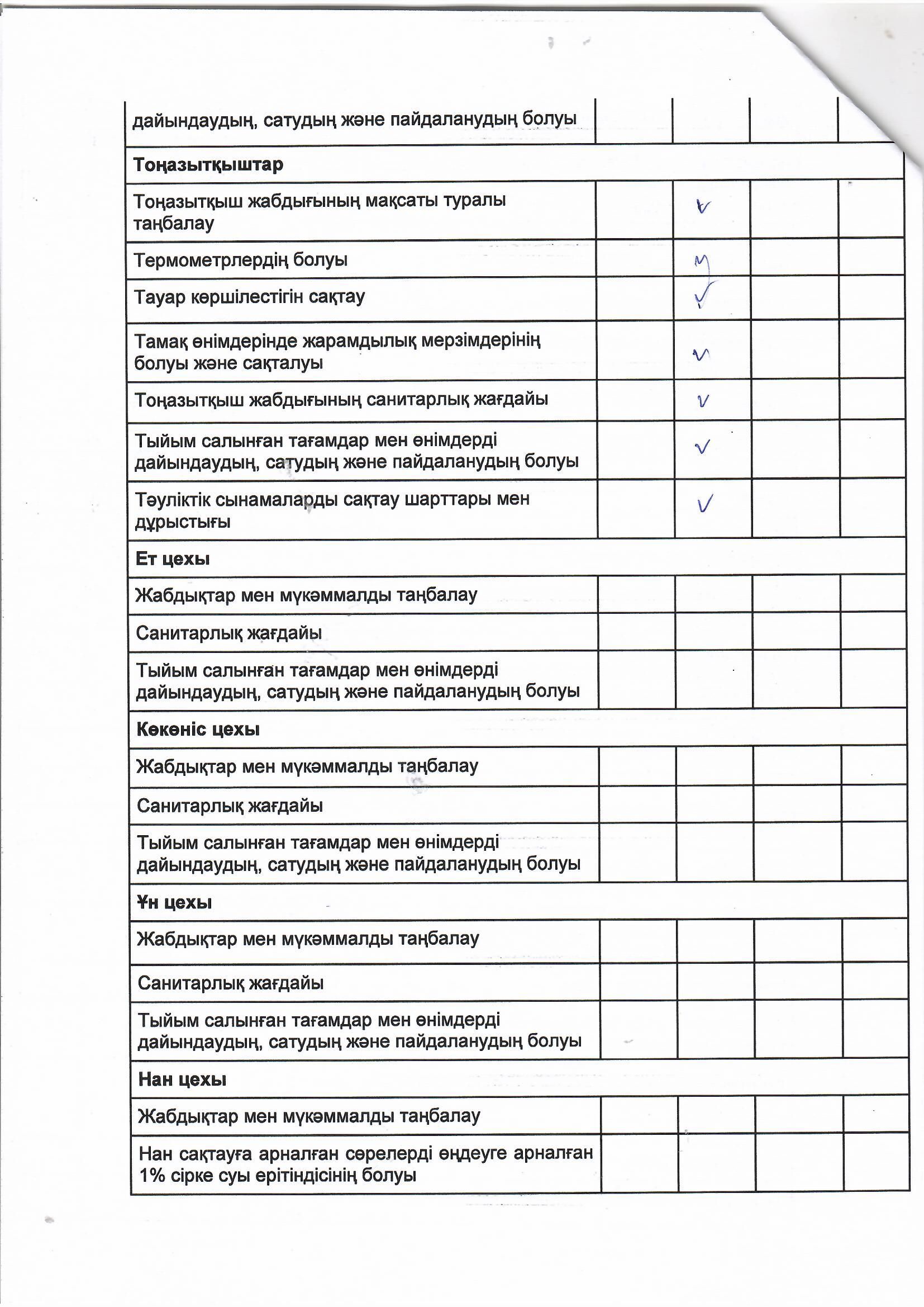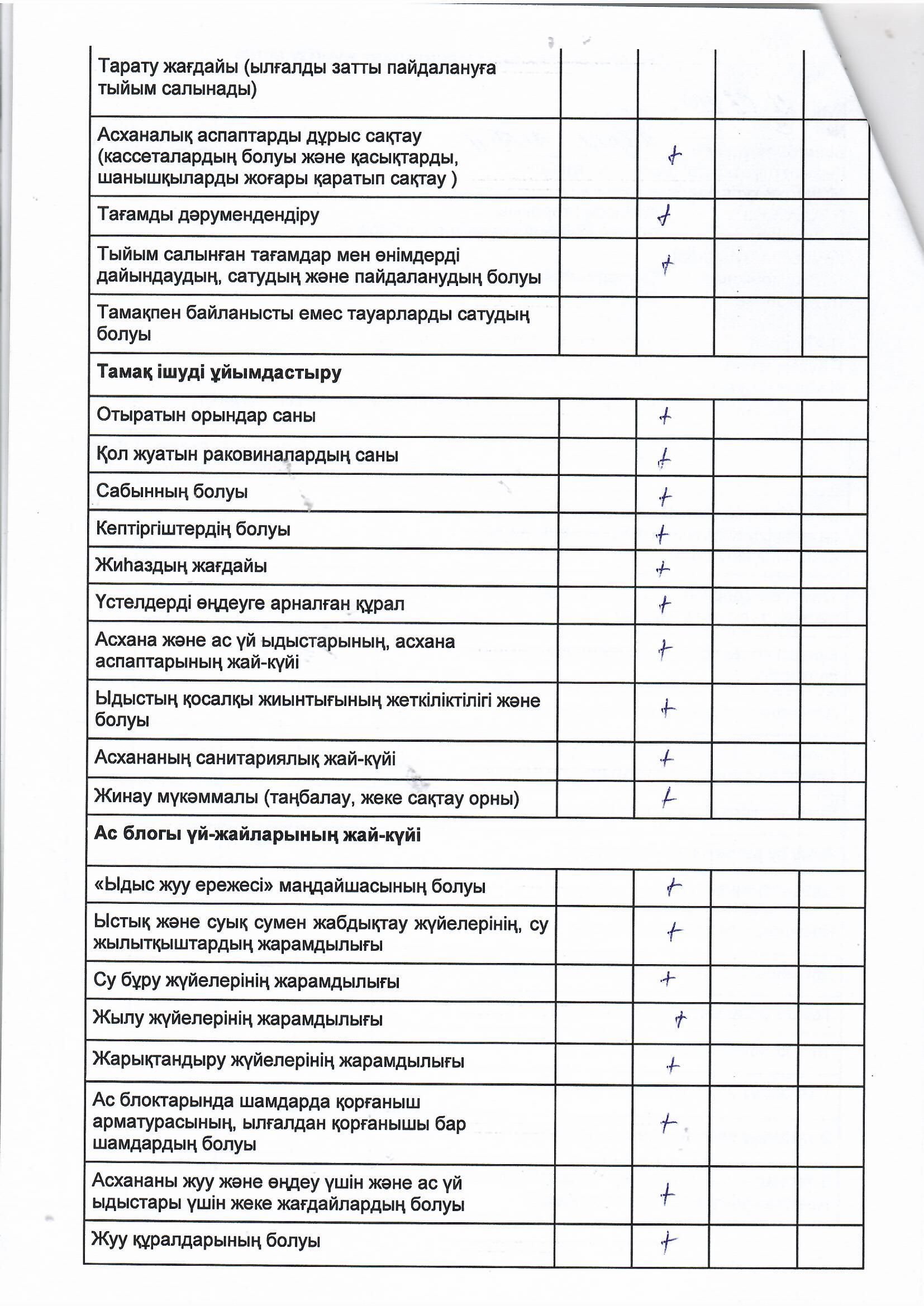 2023 жылдың 28 желтоқсан күні бракераж комиссиясы тамақтану сапасына мониторинг актісін жүргізді