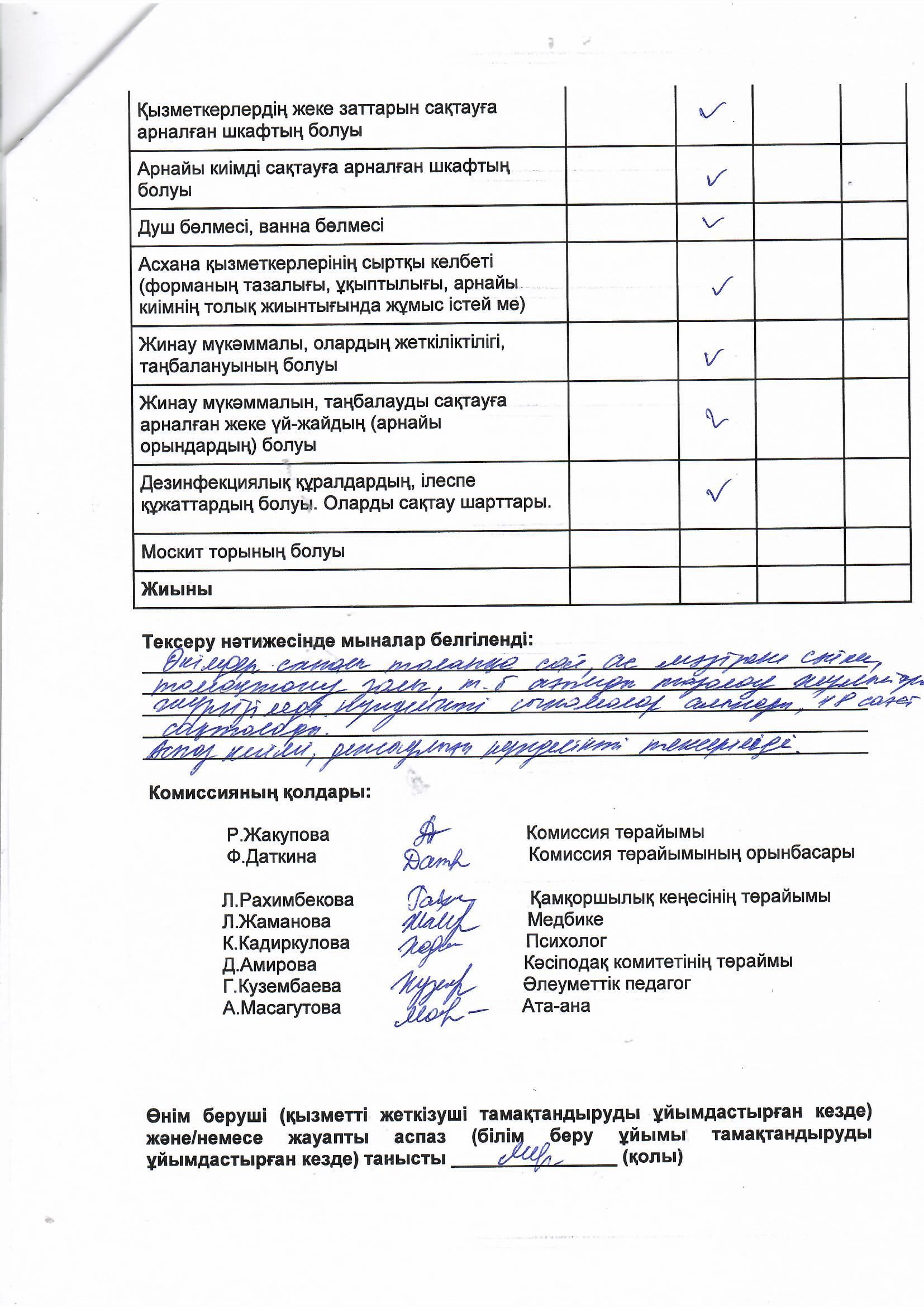 2024 жылдың 20 наурыз күні бракераж комиссия мүшелері тамақтану сапасына мониторинг актісін жүргізді.