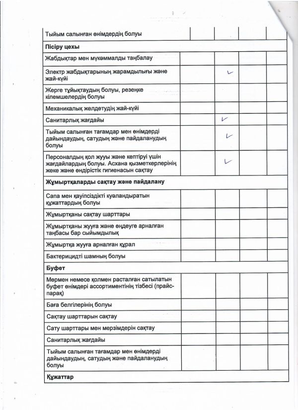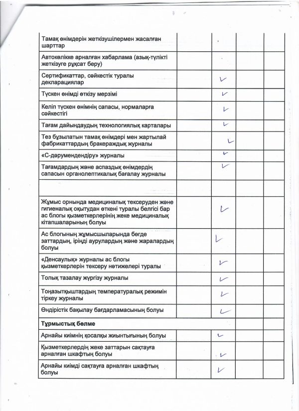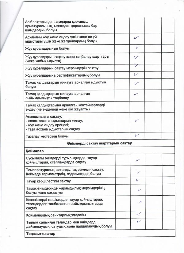 Тамақтану сапасына мониторинг жүргізу актісі 2023 жылдың ақпан айына