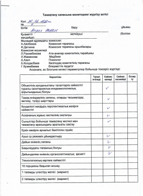 Тамақтану сапасына мониторинг жүргізу актісі 2023 жылдың қаңтар айына