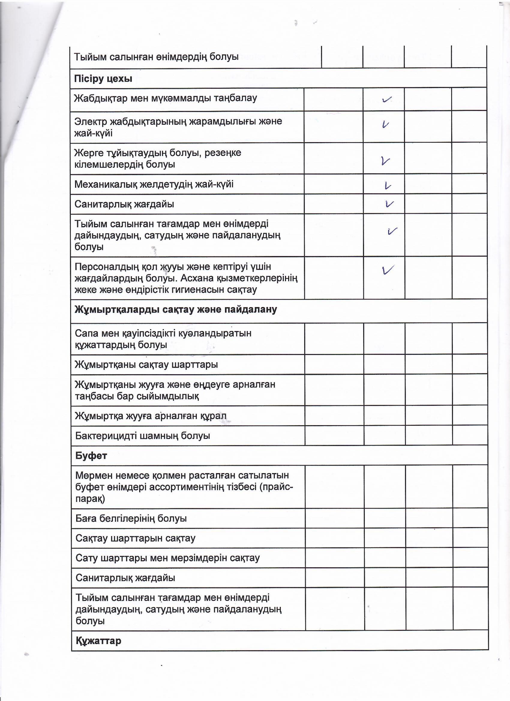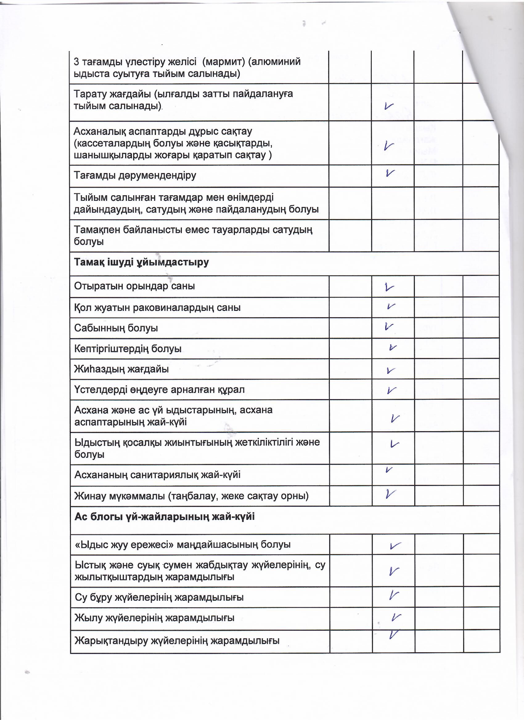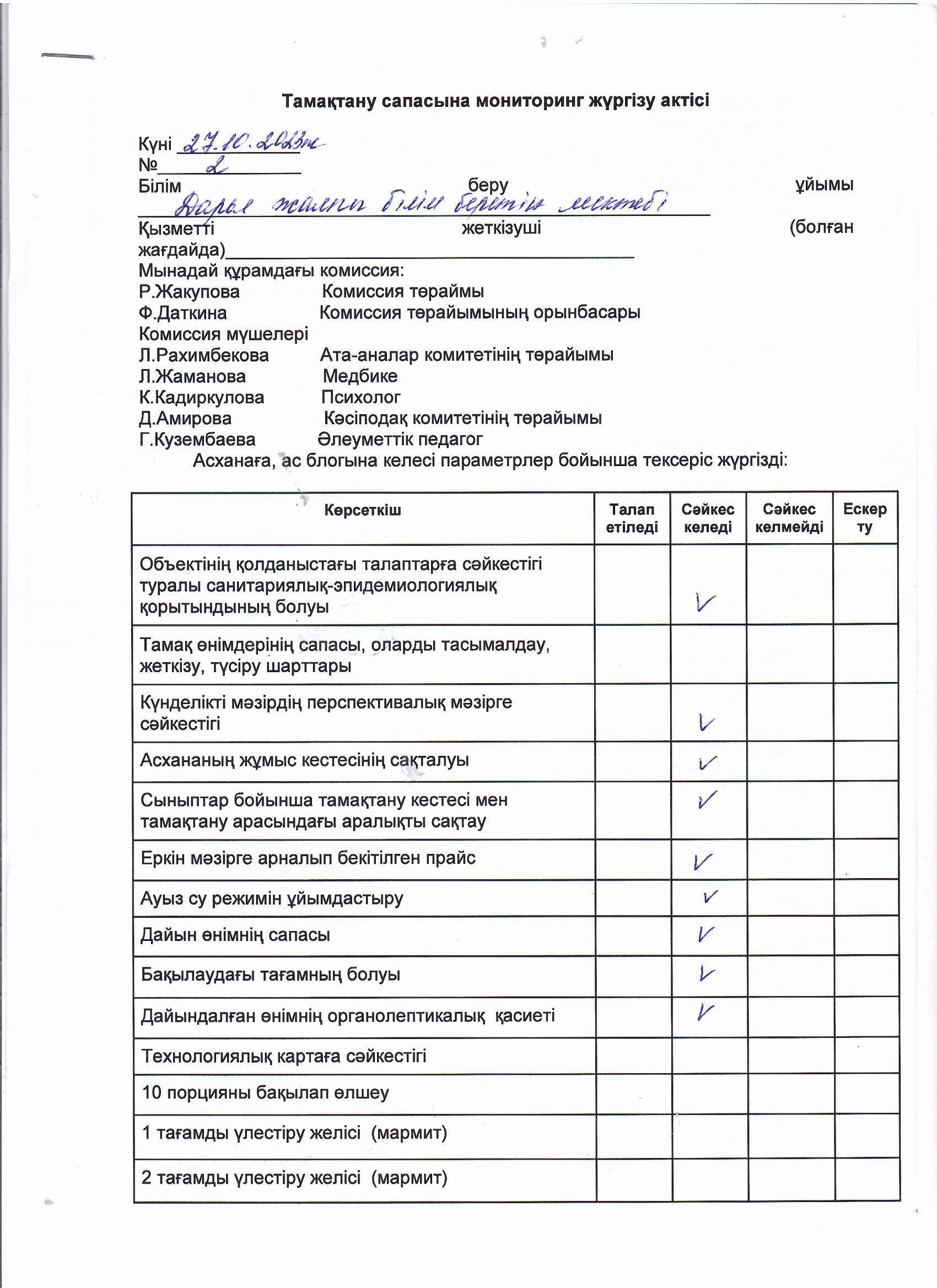 Тамақтану сапасына мониторинг актісі