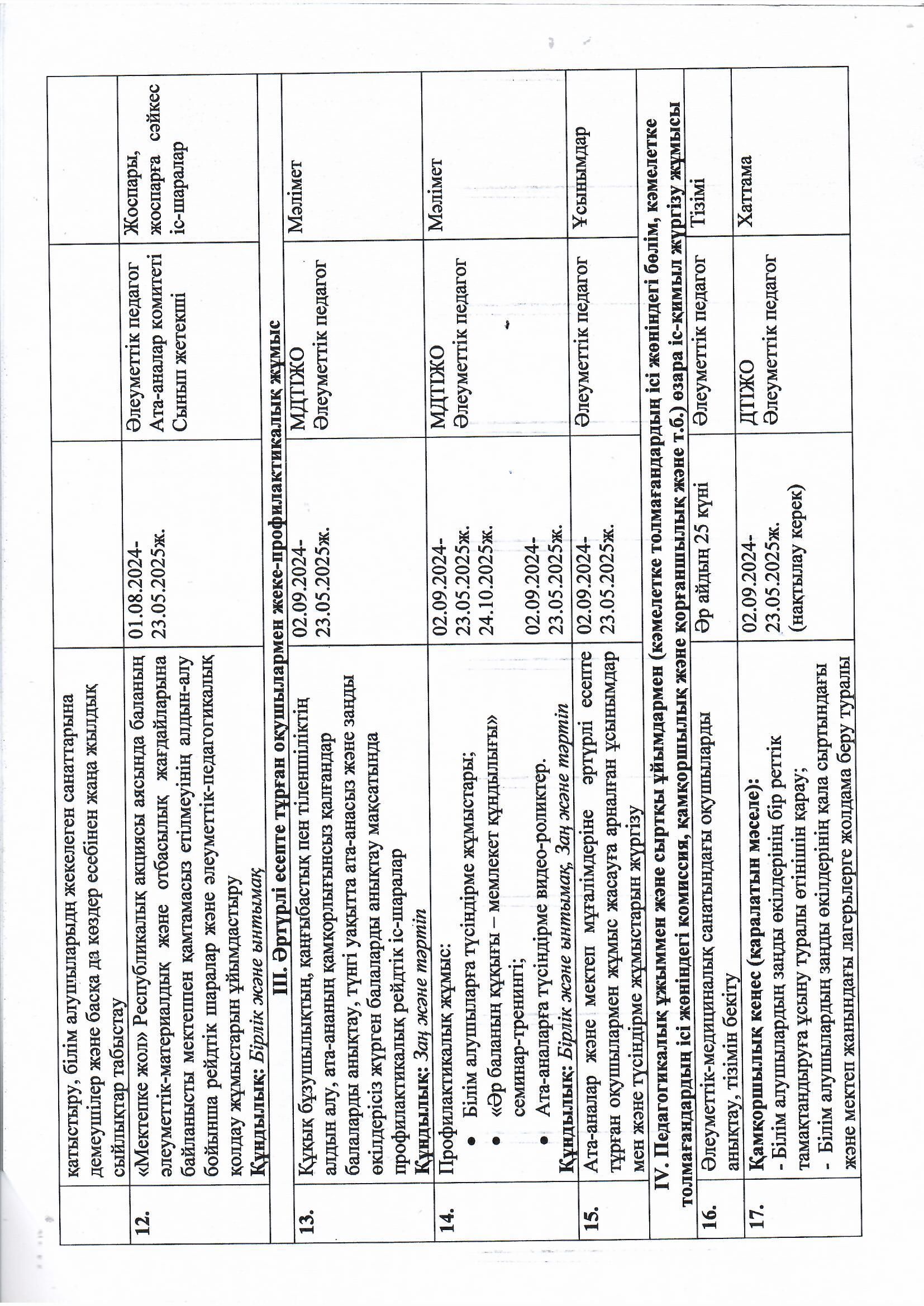 Әлеуметтік педагогтің 2024-2025 оқу жылының жылдық жоспары