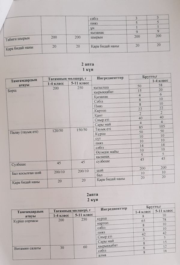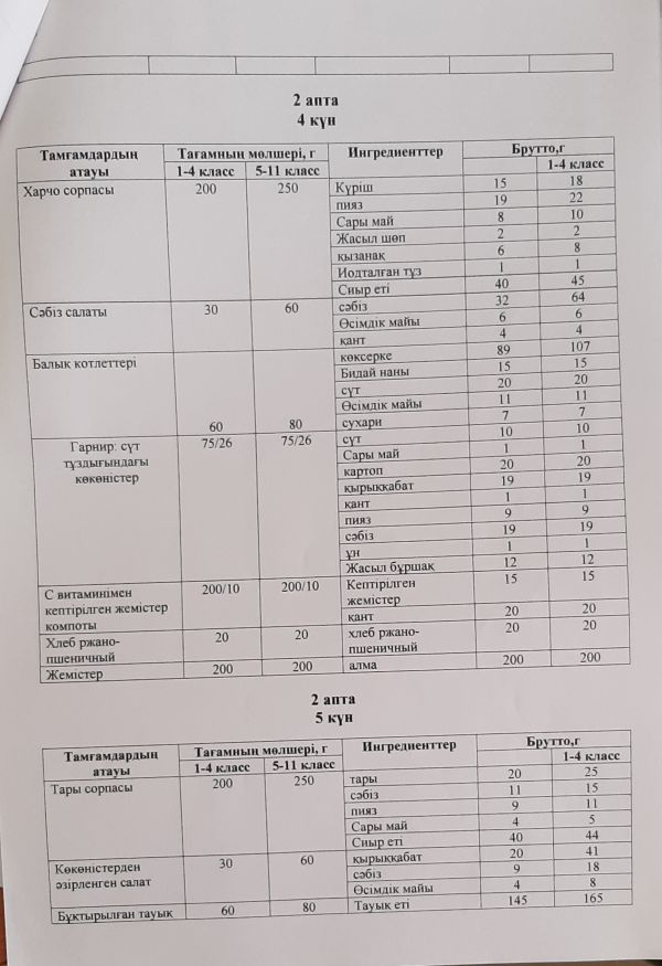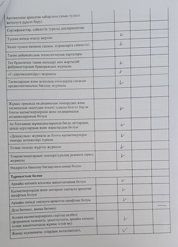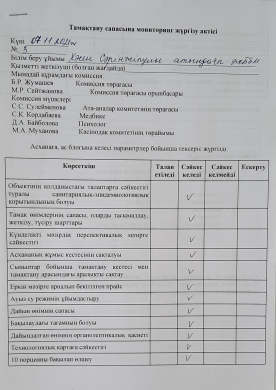 Тамақтану сапасына мониторинг жүргізу актісі