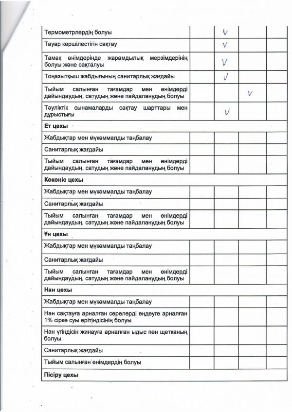 Тексеріс барысында асхана iшi, ас қоймасы таза, артық зат, иiс жоқ.