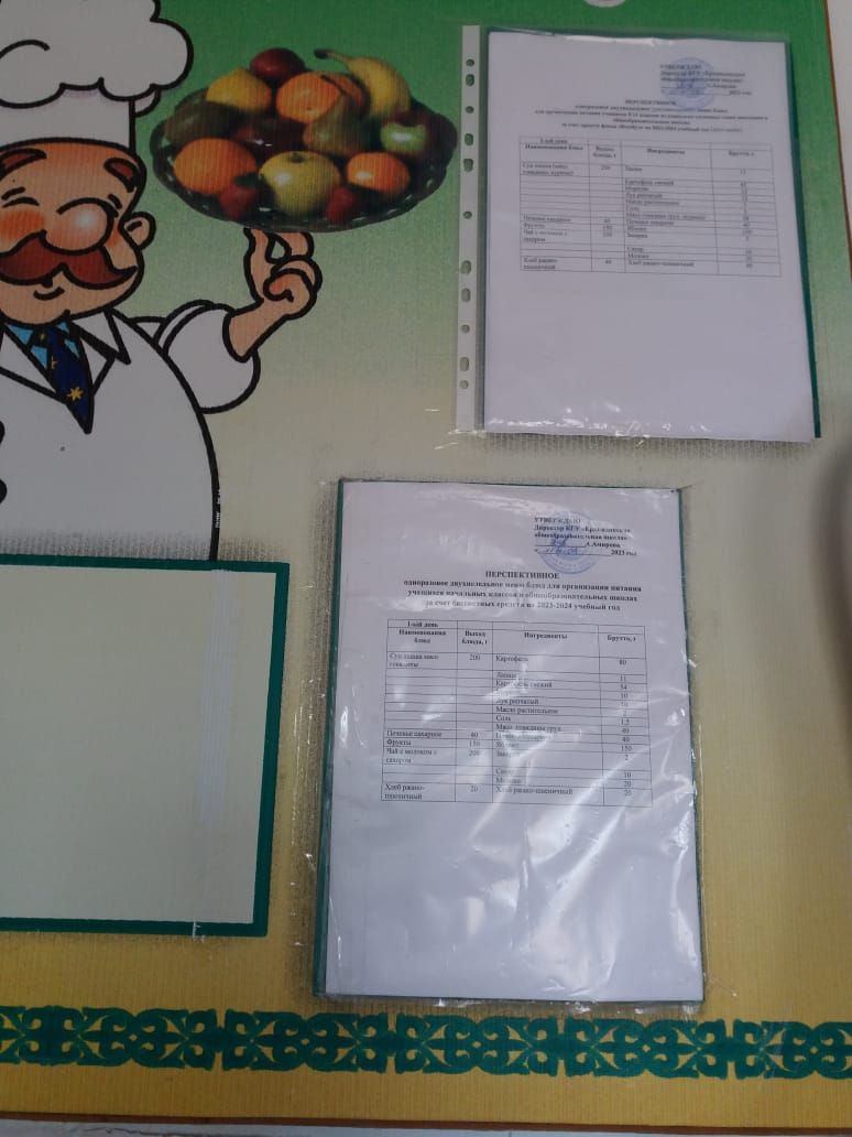 Еркіндік ЖББ мектебінің әлеуметтік осал топ отбасыларынан шыққан 5-11 сынып оқушыларына арналған 2023-2024 оқу жылдарындағы (қыс-көктем) 2 апталық ас мәзірі