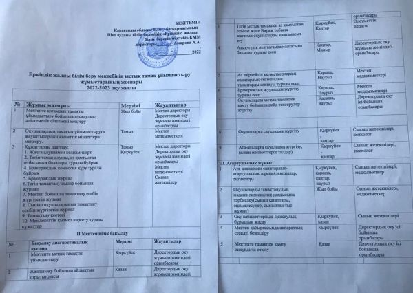 Еркіндік жалпы білім беретін мектебінің ыстық тамақ бұйрығы 2021ж