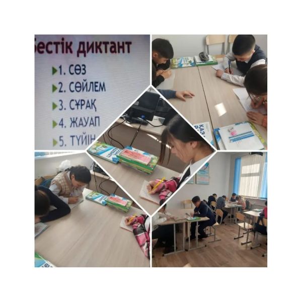 С.Мұқамеджанов атындағы ЖББМ " XX ғасыр-сауатты ұрпақ ғасыры" атты сауаттылық апталығының жоспарына сәйкес 4-сыныпта "Қыс бейнесі" тақырыбында бестік диктант алынды.