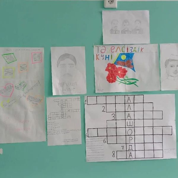 С.Мұқамеджанов атындағы ЖББМ КММ мектебі."Тарих толқынында"тарихи сауаттылық апталығы жоспары аясында,сөзжұмбақ құрастыру байқауы бойынша 7-8- сынып,қабырға газетін шығару байқауы…