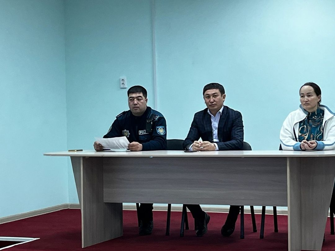 Шет ауданы “С Мұқамеджанов атындағы ЖББМ” КММ 9-11 сыныптар арасында Киікті ауылдық округінің учаскілік полиция инспекторы Шеризан Еркежан және ауыл әкімі М.К.Смагуловтың қатысуымен &ldq…