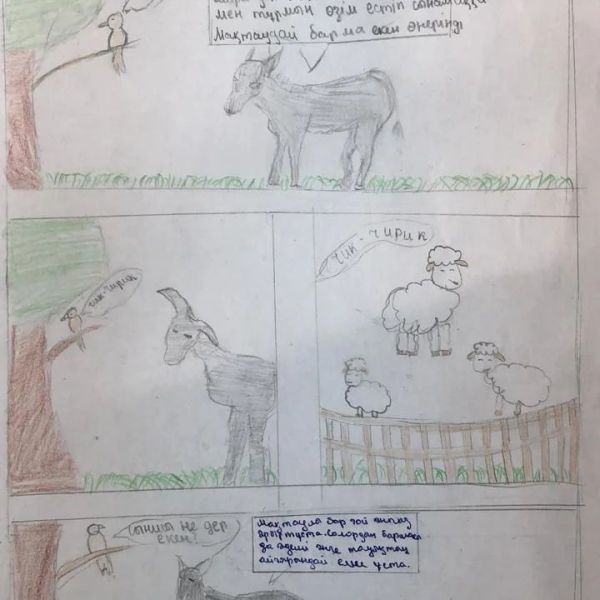 " ХХІ ғасыр - сауатты ұрпақ ғасыры" атты оқу сауаттылығы апталығы аясында С.Мұқамеджанов ЖББМ 6-сынып оқушысы Жеңіс Айтолқынның А.Байтұрсынұлының " Екі шыбын" және " Қарға м…