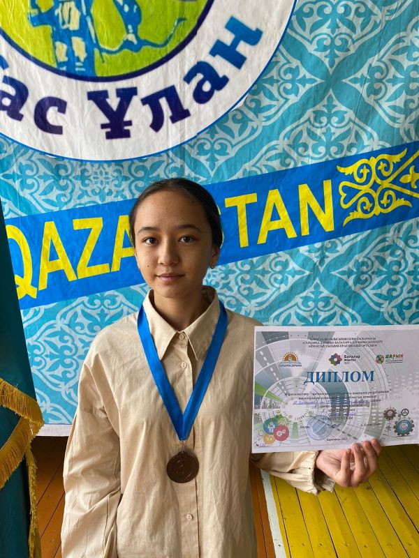 Мектебіміздің 7 "а" сынып оқушысы Үйлесін Айым Республикалық жасөспірімдер олимпиадасының облыстық кезеңіне қатысып, ІІІ орынға ие болды