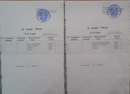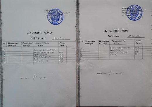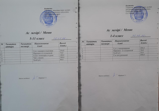 Тамақтану сапасына мониторинг жүргізу актісі