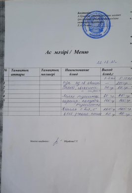 тамақтану сапасына мониторинг жүргізу актісі