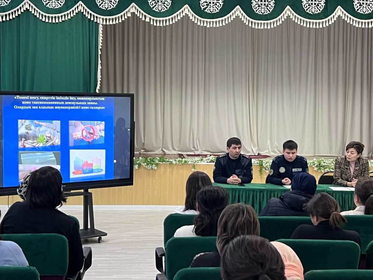 2025 жылдың 16 сәуірінде мектеп инспекторы А.Абдыкалихов 9, 11-сынып оқушыларына нашақорлықтың алдын алу бойынша «Нашақорлық қаупі мен есірткінің зияны» тақырыбында түсіндірме жұмыс жүрг…