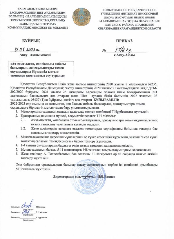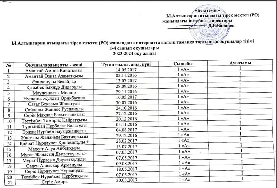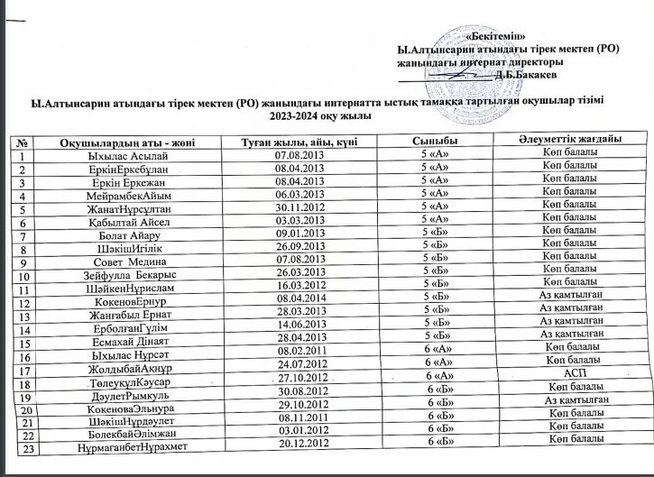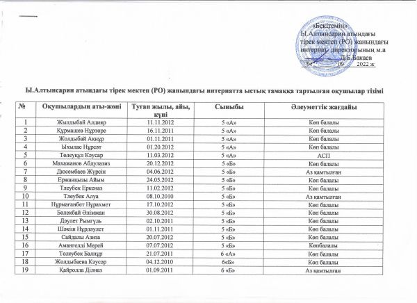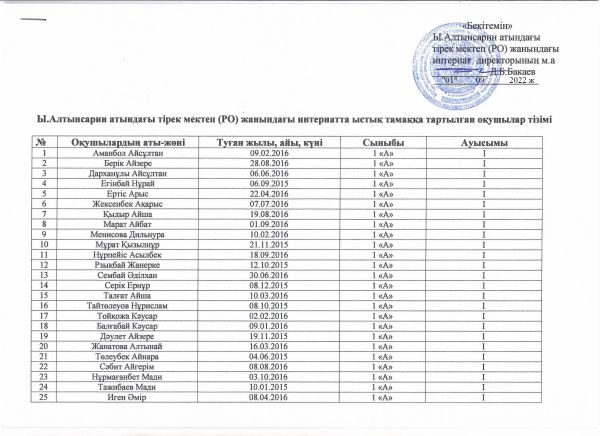 Организации> "Ы.Алтынсарин атындағы (РО) жанындағы Интернат " КММ