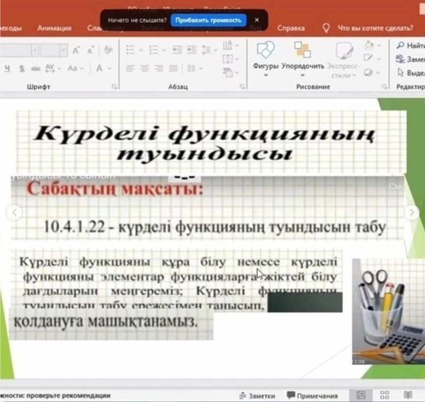«Ауыл мектебі – сапалы алаң» жобасы аясында 2025 жылғы 12 мамыр күні жоспарға сәйкес 9-сынып оқушыларына алгебра пәнінен пән мұғалімі Омашева Дәрібала Қойбағарқызы онлайн форматта өз іс-тәжірибесімен бөлісті.