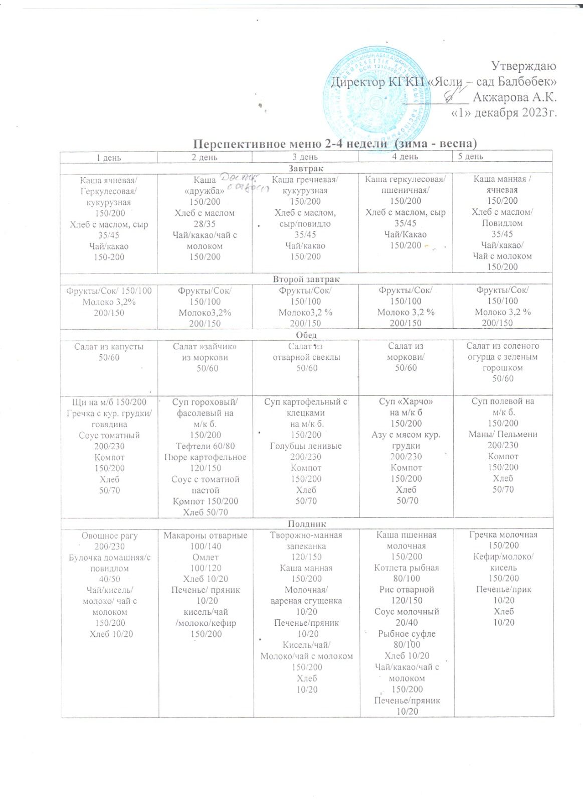 Болашақ мәзір 2-4 апта (қыс-көктем)