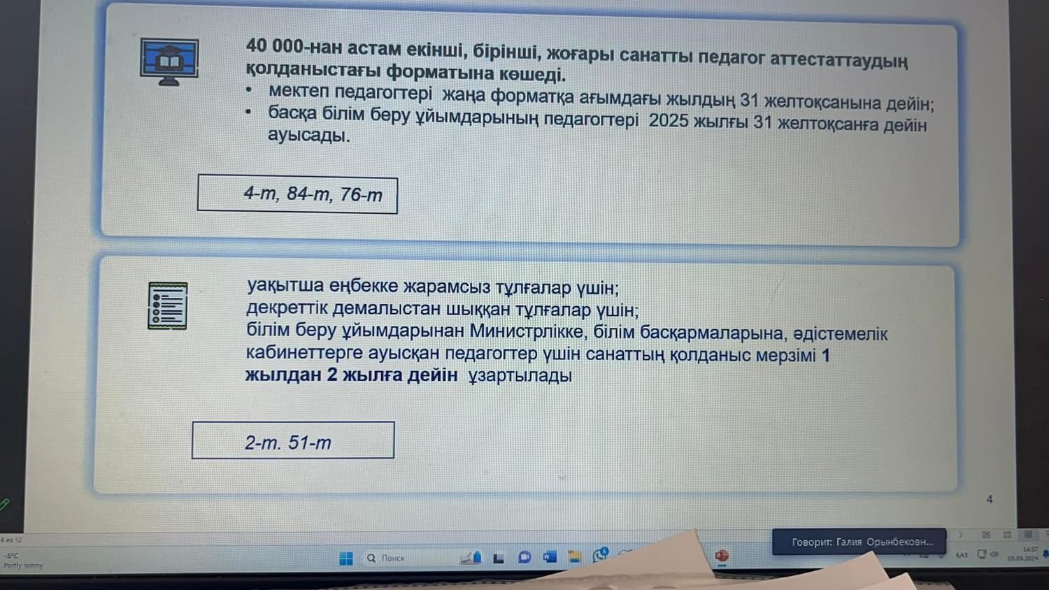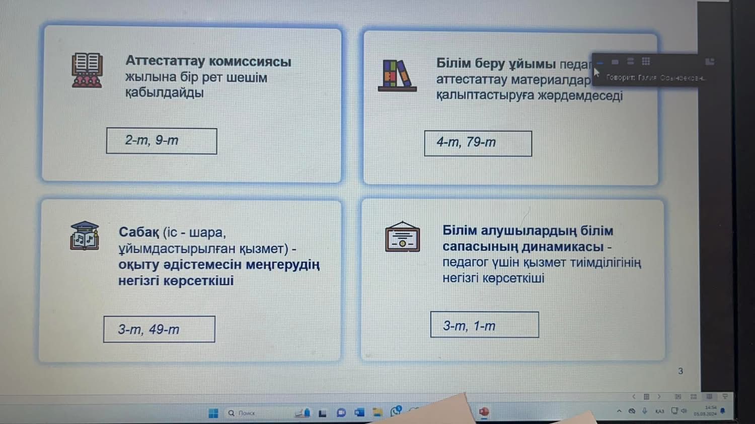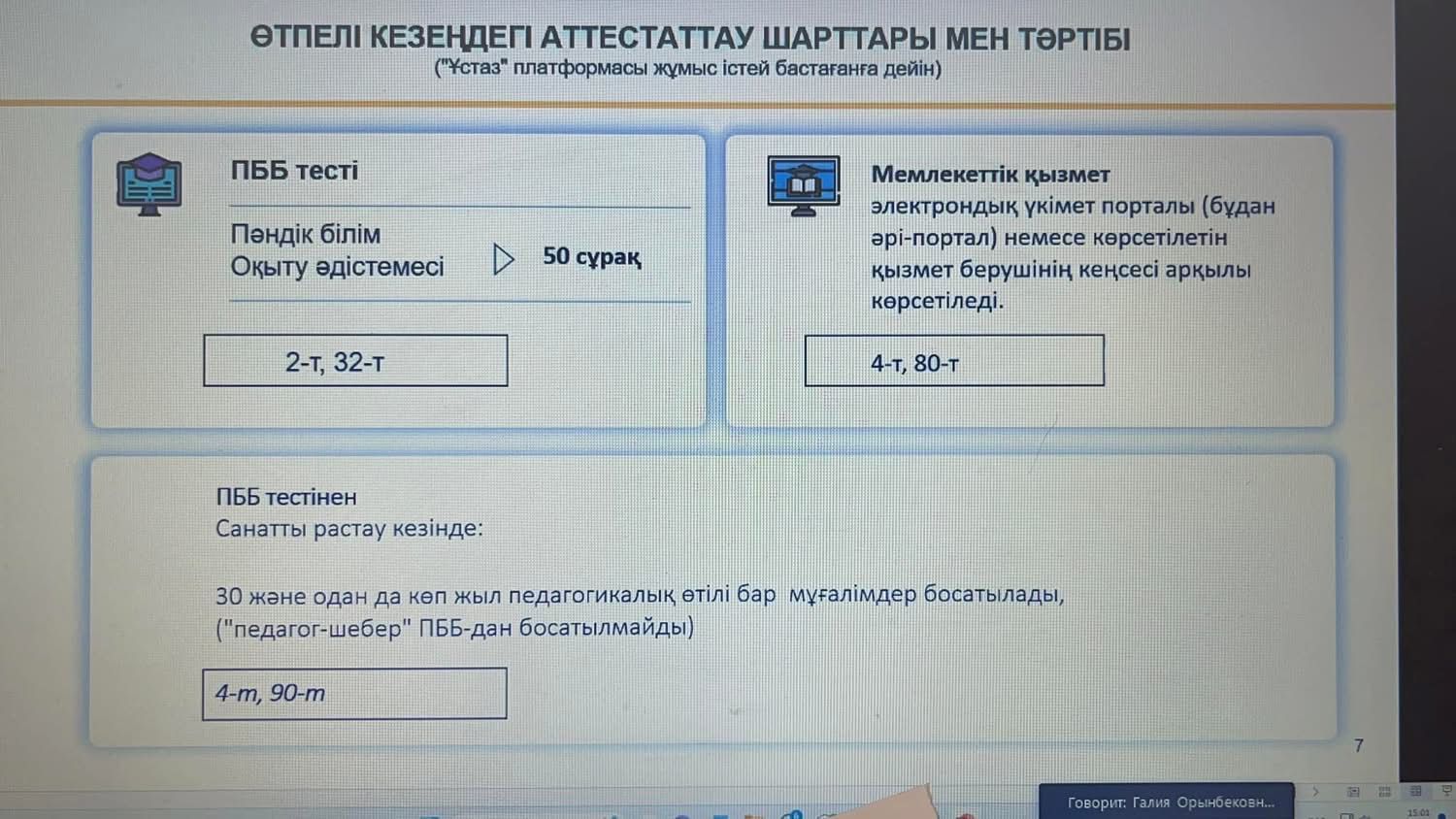 «Аққу» бөбекжай» КМҚК-ның педагог қызметкерлері аттестаттаудан өткізу қағидалары мен шарттары туралы жалпы ережелерімен таныстырылды. Аттестаттау рәсімдері оны өту кезеңдері нақтыл…