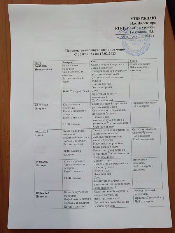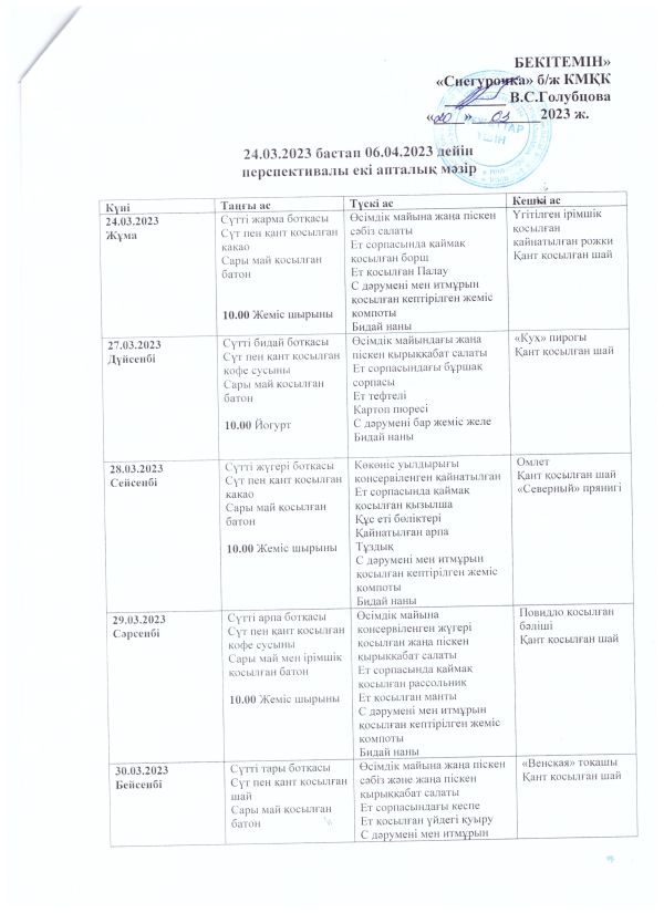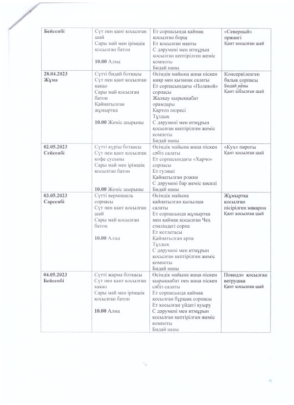 Перспективалы екі апталық мәзір 9.11-22.11.2022