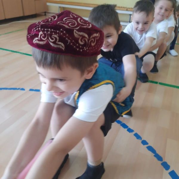 Балалар қазақ халық ойындарын ойнады: Киіз үй, Аударыспан, Ким тырнысады, Орамал.