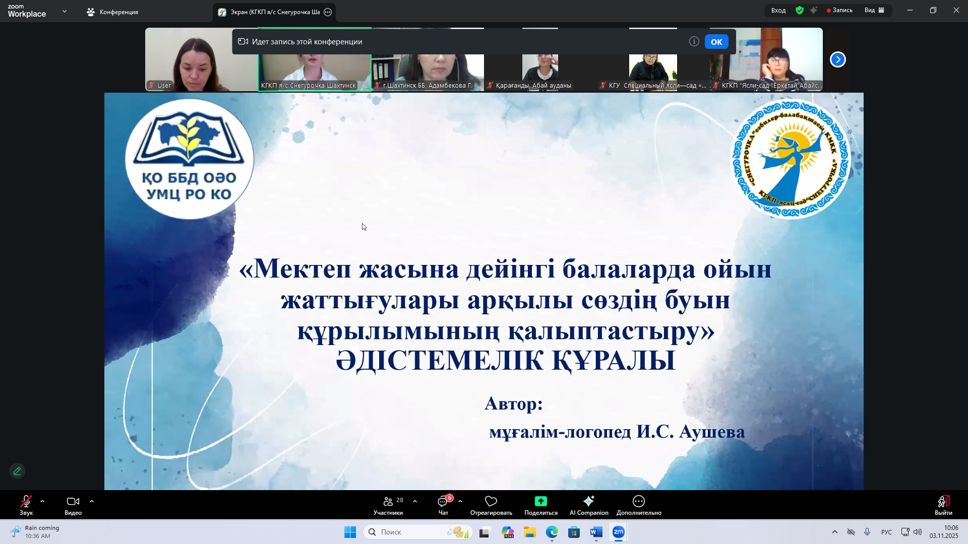 2025 жылғы 3, 4 және 5 қарашада біздің бөбекжайда педагог-зерттеушілердің инновациялық жұмыс тәжірибесін тарату және жалпылау бойынша облыстық онлайн-семинарлар өтті.