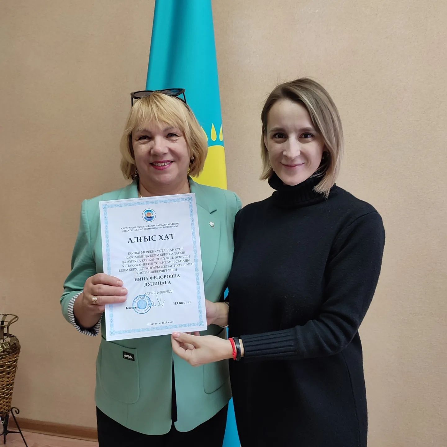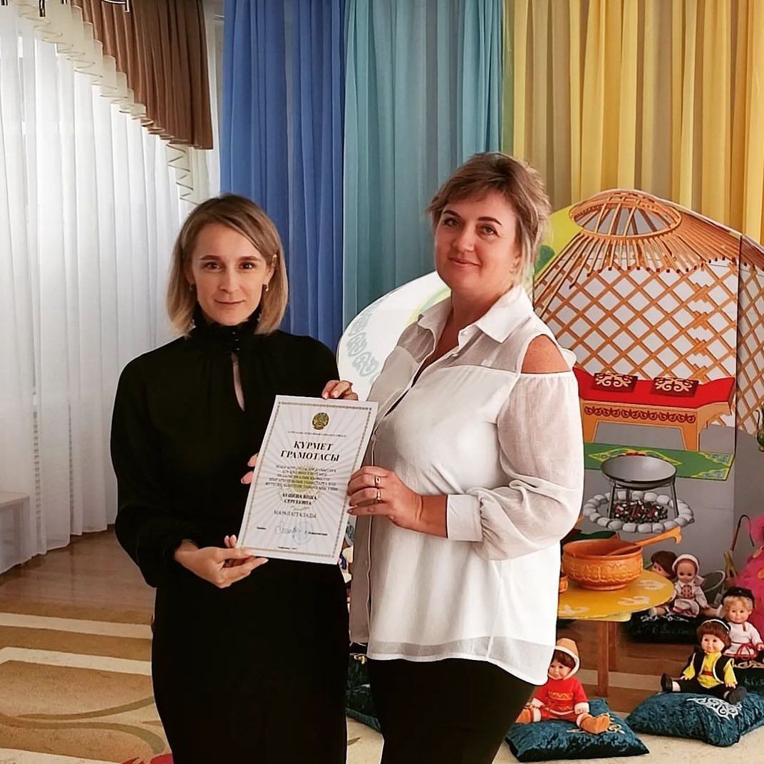Қазақстан халықтарының Тілдері күнін мерекелеу құрметіне білім басқармасының Құрмет грамотасымен И.С. Аушева - біздің балабақшамыздың логопед-мұғалімі марапатталды.