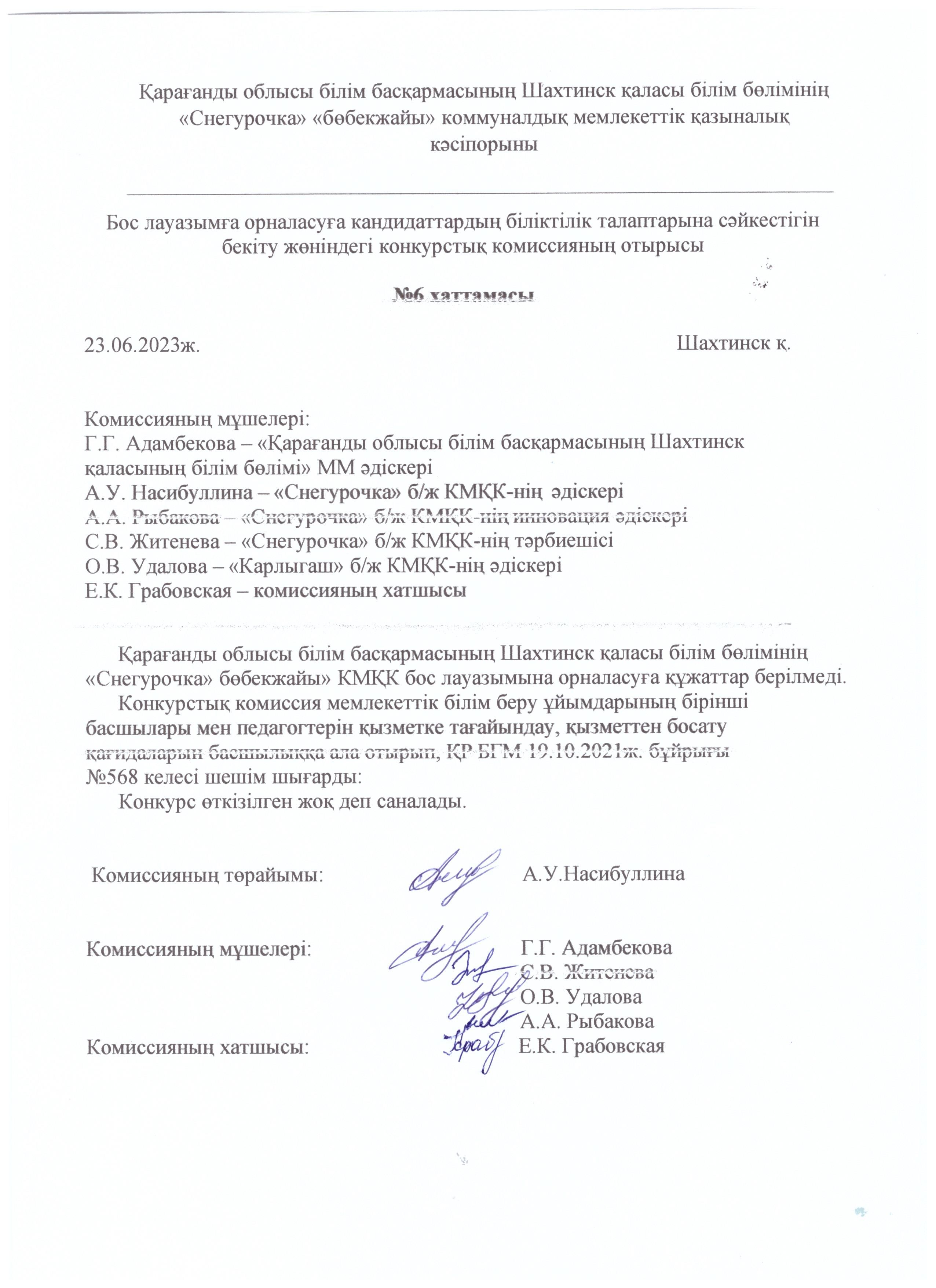 Результаты заседания конкурсной комиссии по утверждению кандидатов на занятие вакантной должности на соответствие квалификационным требованиям