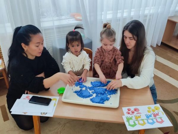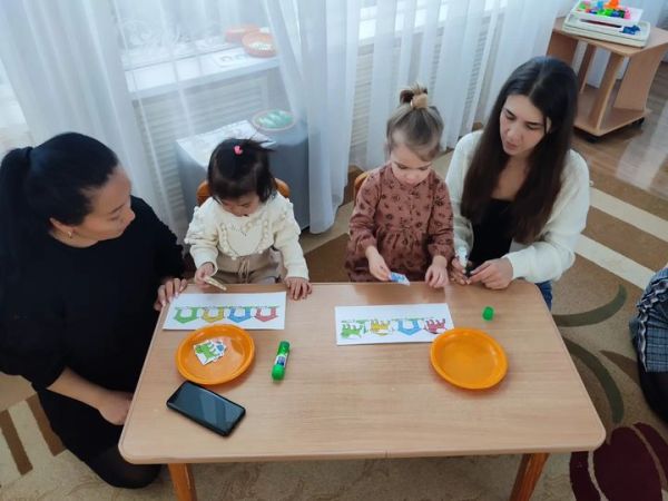 "Сырттай балалар бақшасы" жобасын іске асыру. Балалар бақшасынан келген балалармен кездесу. Бүгін балалар ұсақ моториканы дамытуға арналған ойындар мен жаттығулар орындады: қуыршақты қыста…