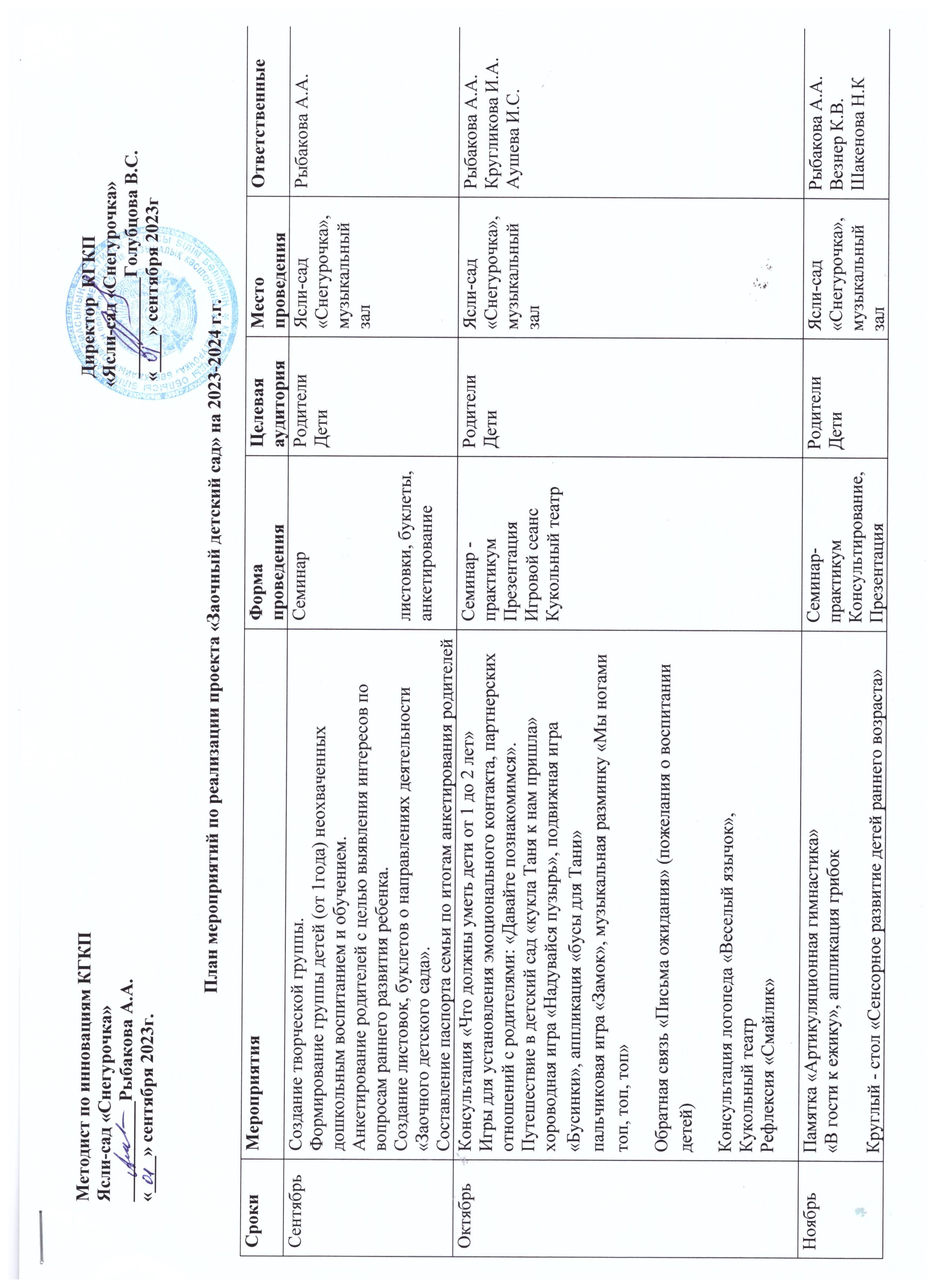 2023-2024 жылдарға арналған «Сырттай балабақша» жобасын іске асыру жөніндегі іс-шаралар жоспары