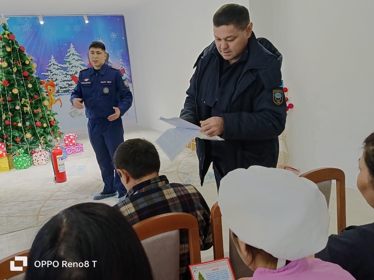 "Гүлдер" бөбекжайында жаңа-жыл шыршасы кезінде өрт қауіпсіздігі жөнінде өрт сөндіру бөлімінң мамандары келіп түсіндірме жұмыстарын жүргізіп кетті.