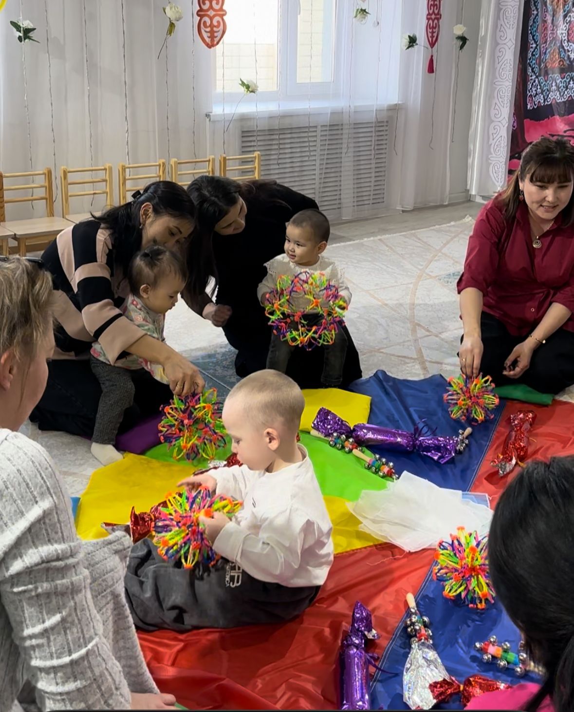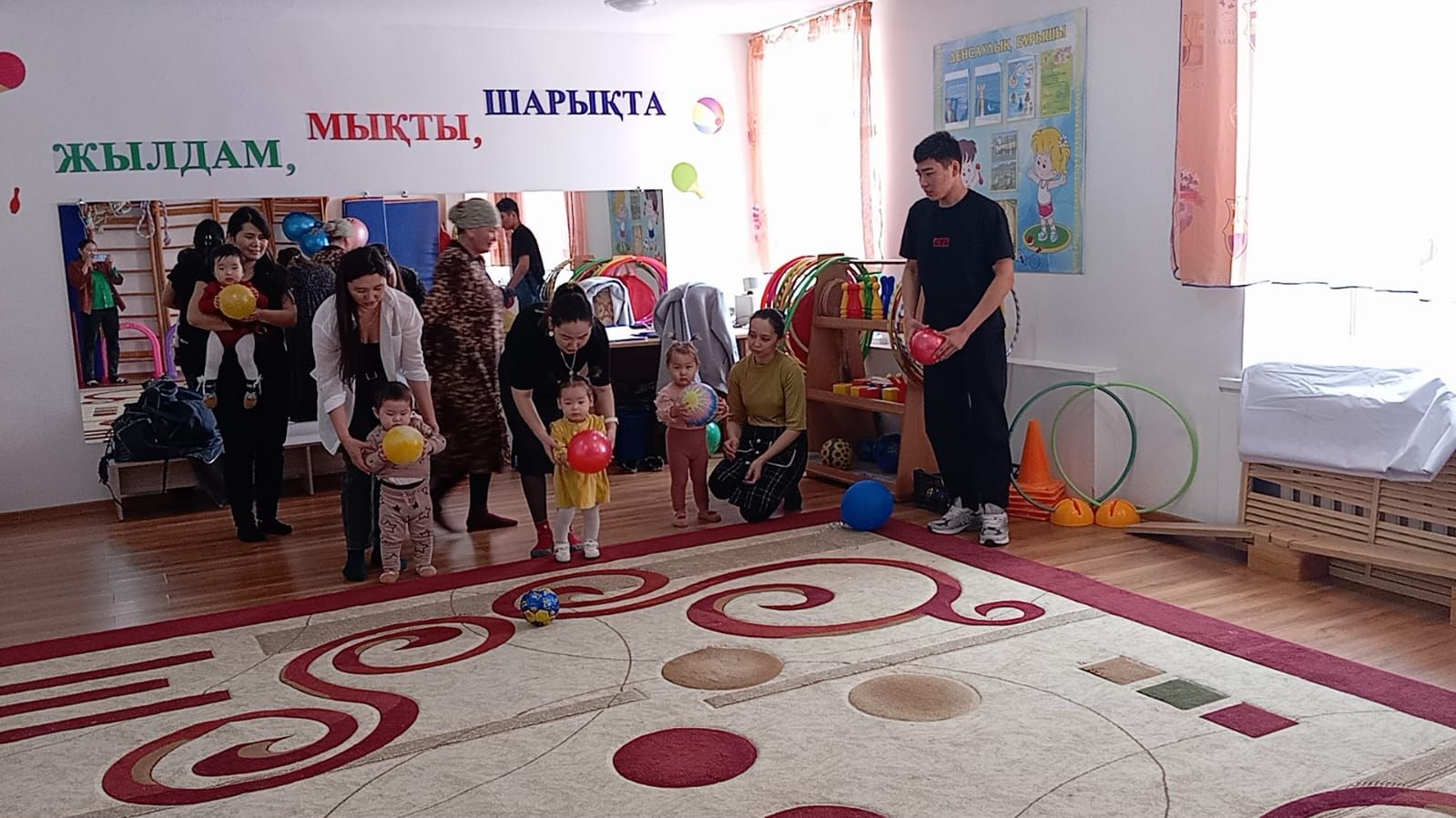 Музыка жетекшісі А.Эржан сырттай балабақша жобасы аясында бөбекжайға кезекте тұрған балалардың аналарымен көңілді уақыттарын өткізді