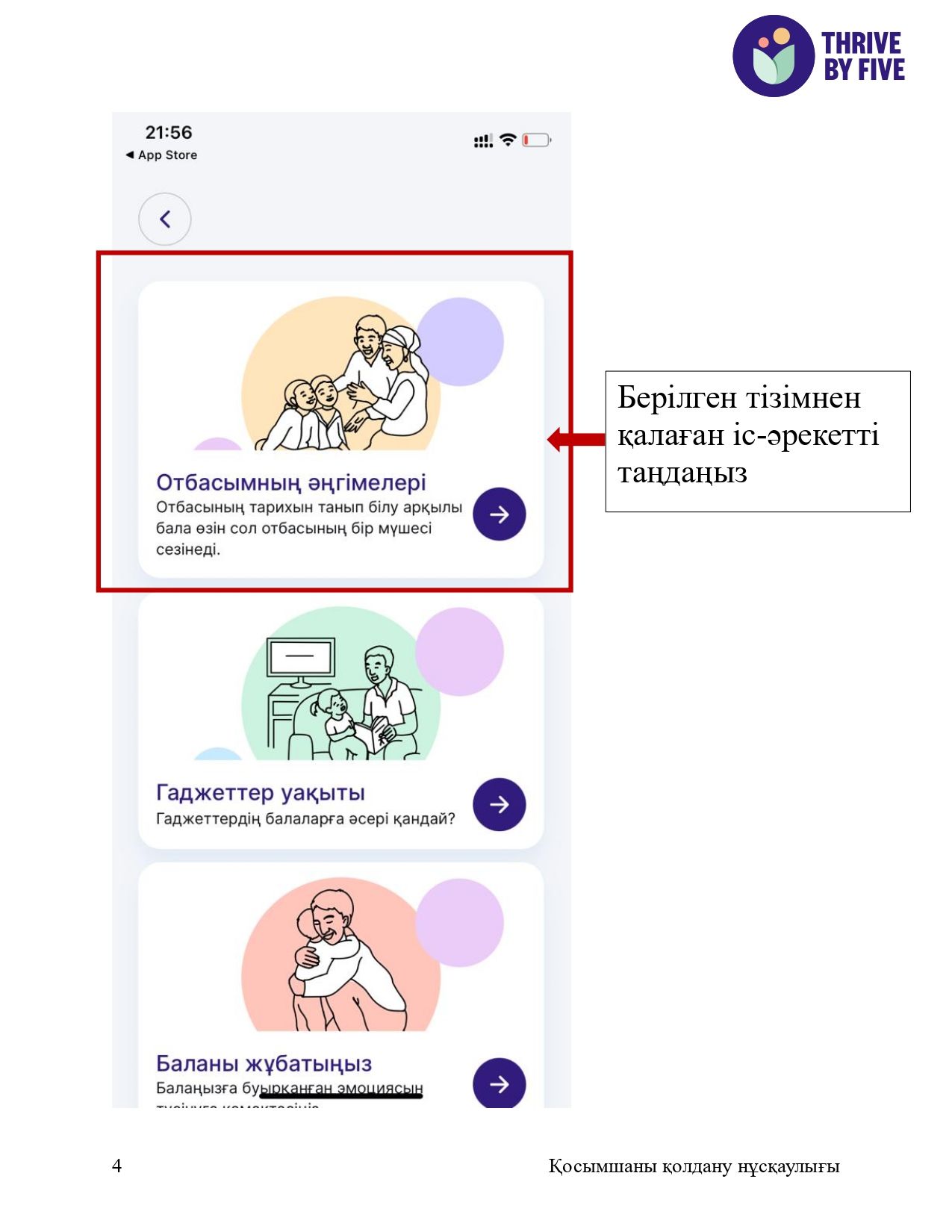 «Беске дейін үлгер» ата-аналарға арналған мобильді қосымшасының нұсқаулығы