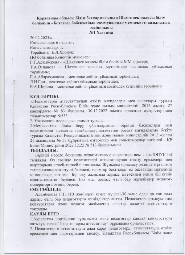 Приказ № 10 Об утверждение совета о педагогической этики
