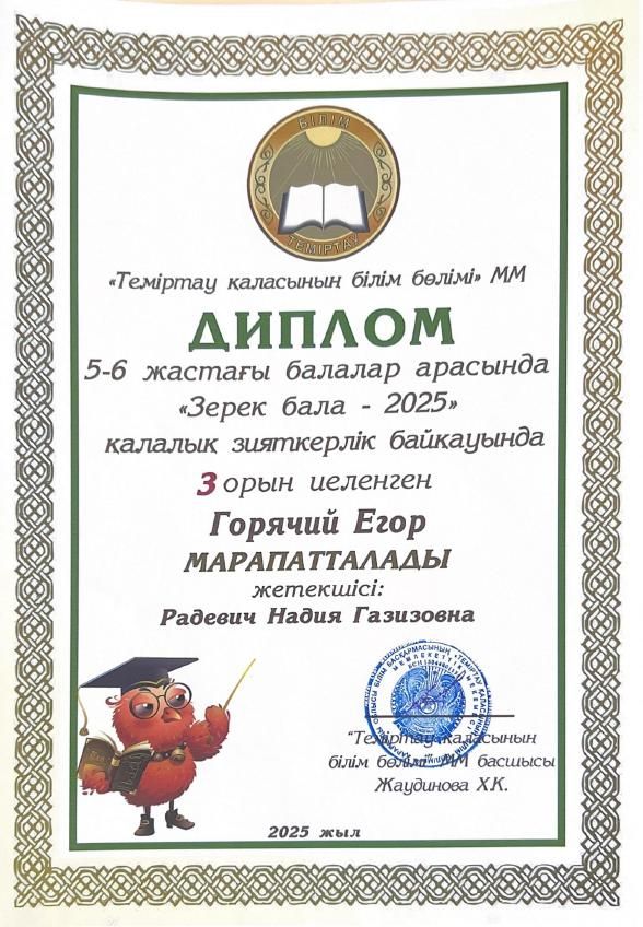 Қалалық интеллектуалдық олимпиада «Зерек бала-2025» өз мәресіне жетті!
