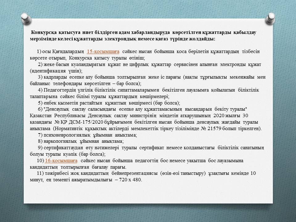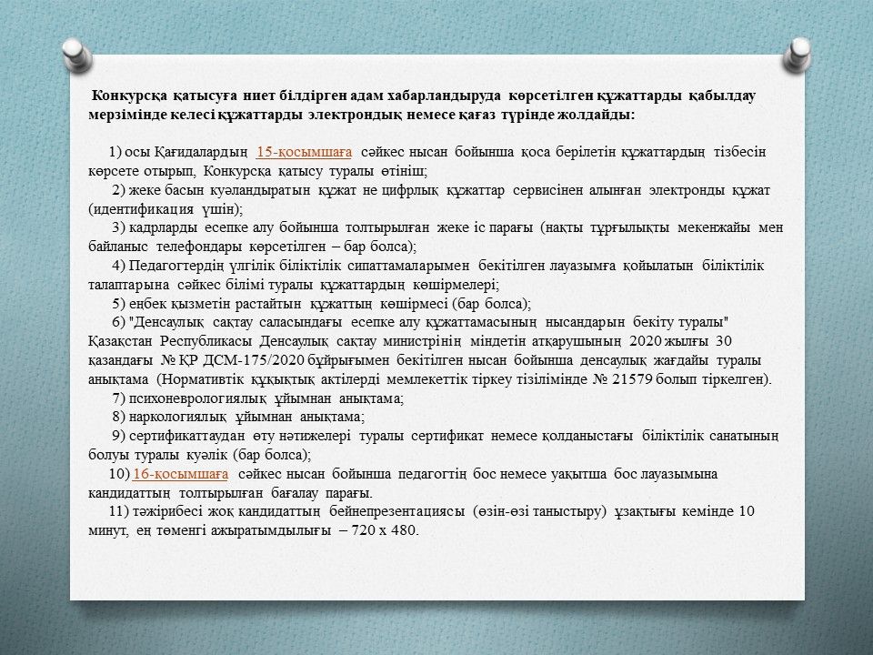 ПЕДАГОГИКАЛЫҚ ҚЫЗМЕТКЕРЛЕР ҮШІН БОС ОРЫНДАРҒА КОНКУРС ЖАРИЯЛАЙДЫ