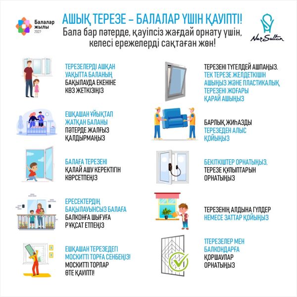 1. Үйде балалар болған жағдайда, ешқашан терезені ашық қалдырмаңыз! Сіз балаңыздың жанында болғаныңызбен, өз назарыңызды басқа нәрсеге аударған мезетте балаңыз өз өмірімен қош айт…