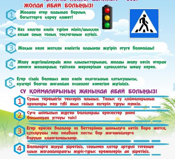 Ең қауіпсіз жол – жолдың сол жағындағы көліктер ағынына қарай жүру. Сыртқа шықпаңыз және жолдың бөлігіне шығып кетпеңіз, көлік қозғалысына кедергі жасам…