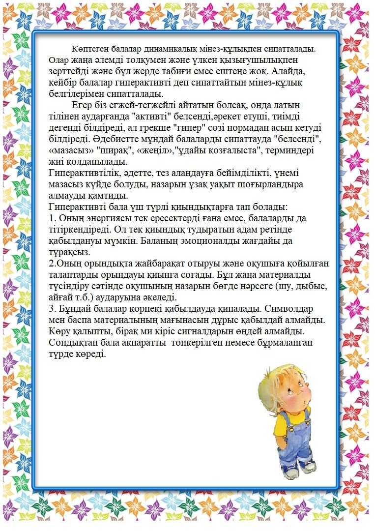 "Гиперактивті бала. Қалай көмектесуге болады?»