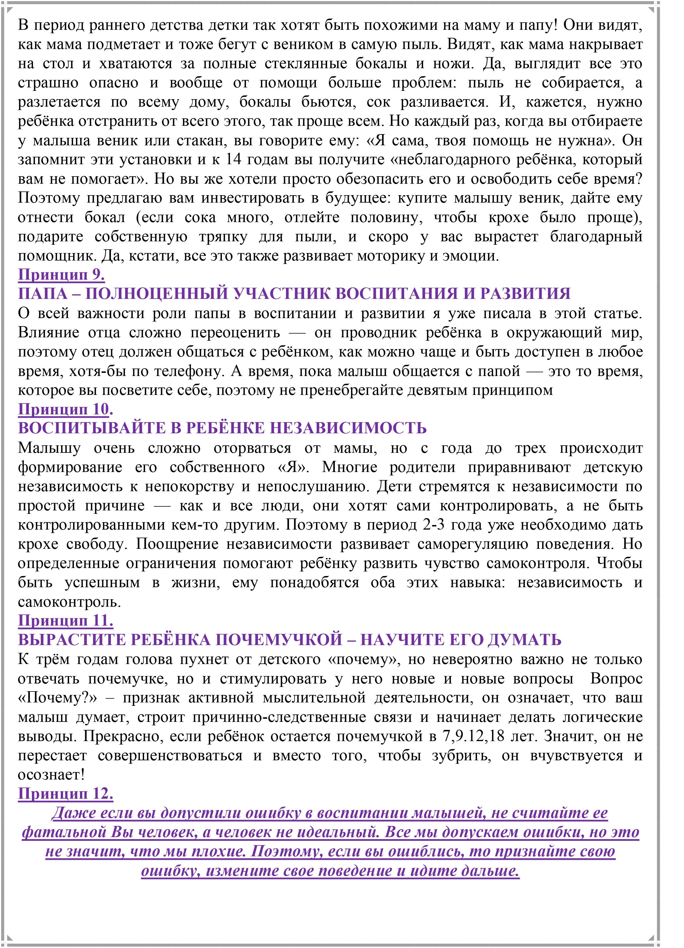 Памятка для родителей «12 принципов воспитания ребёнка»
