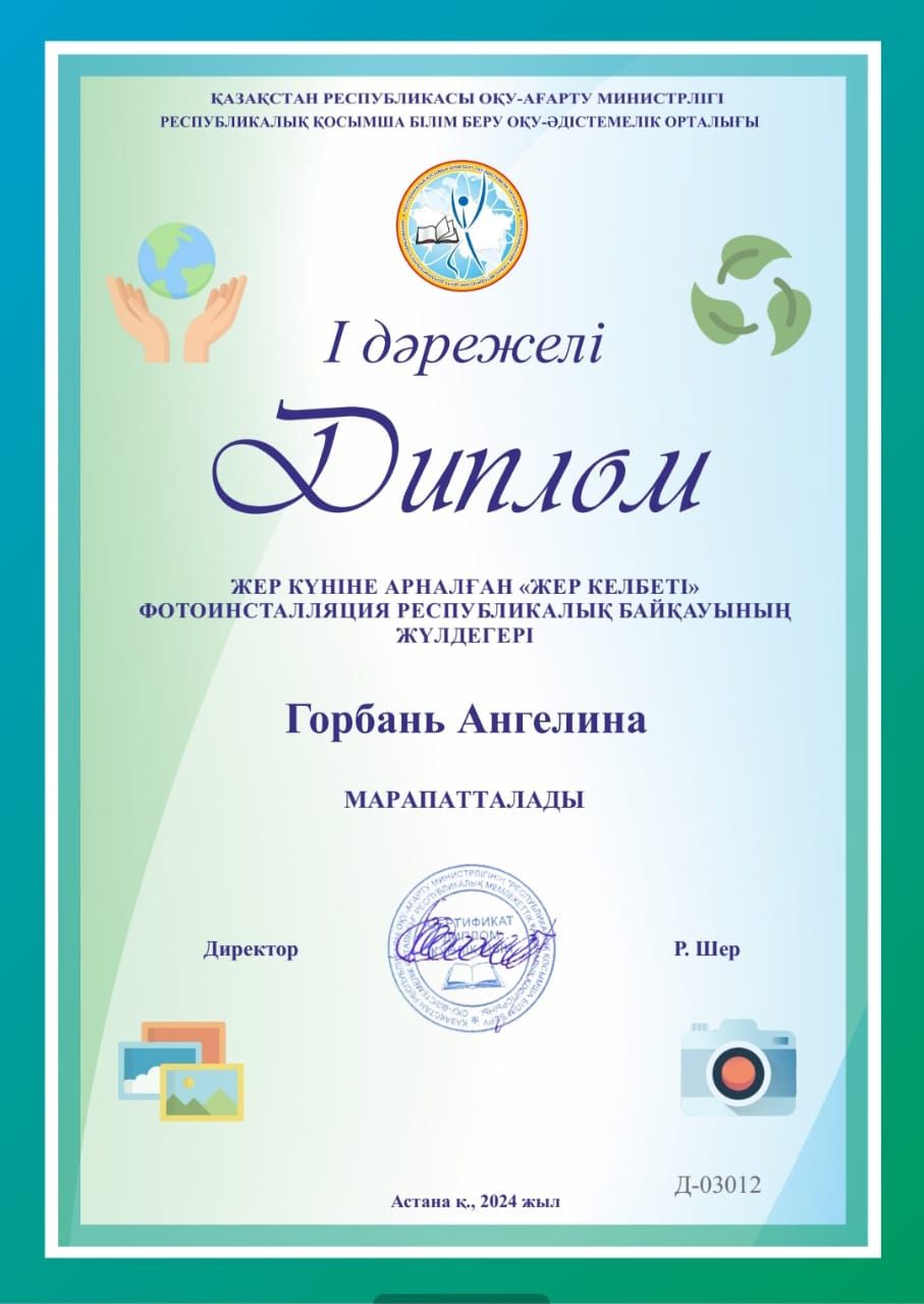 Республиканском дистанционном конкурсе фотоинсталяций "Жер келбеті", посвящённому Дню Земли.
