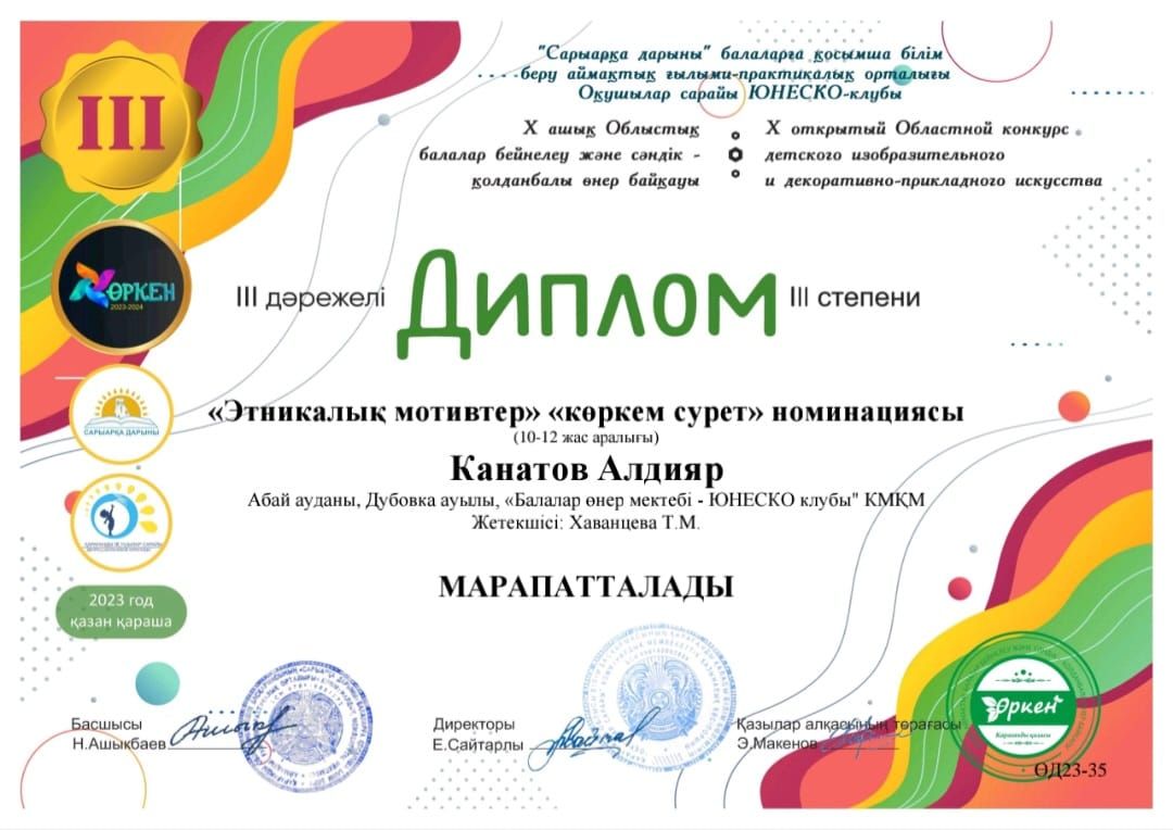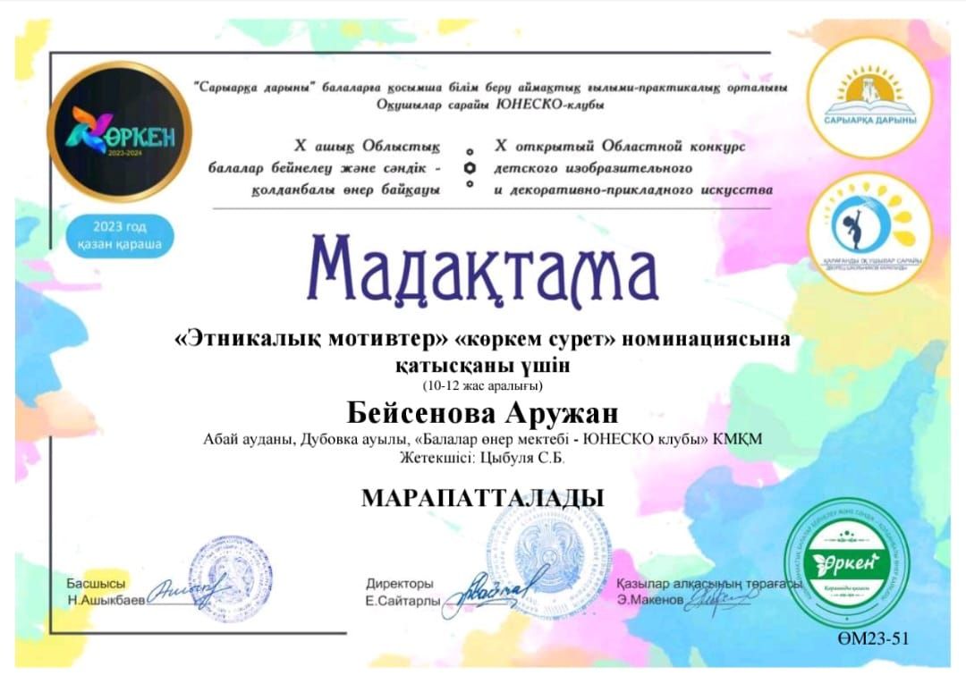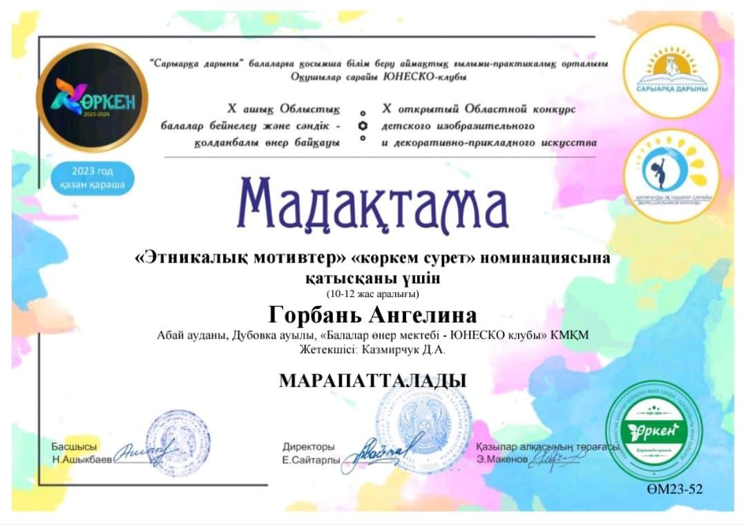 Итоги X Открытого Областного Конкурса Детского Изобразительного и Декоративно-Прикладного Искусства "Өркен" при поддержке Сарыарқа Дарыны