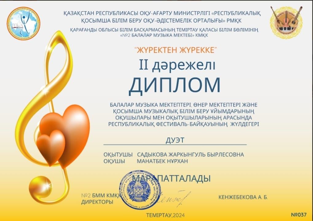5 марта 2024г. состоялся Республиканский конкурс "Жүректен жүрекке" педагог и ученик