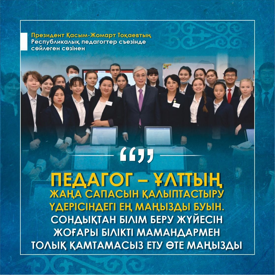 Президент Қасым-Жомарт Тоқаевтың Республикалық педагогтер съезінде сөйлеген сөзінен