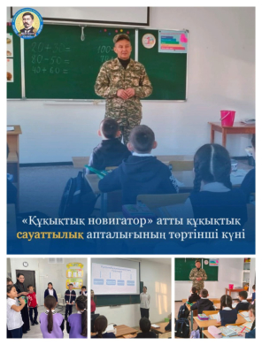 Қарағанды облысы білім басқармасының білім беруді дамыту оқу әдістемелік орталығының ұйымдастыруымен Ә.Бөкейханов атындағы мектеп-лицейінде 16-ақпанда "Құқықтық новигатор" құқықтық апталығының төртінші күнінде мынандай іс-шаралар өткізілді: