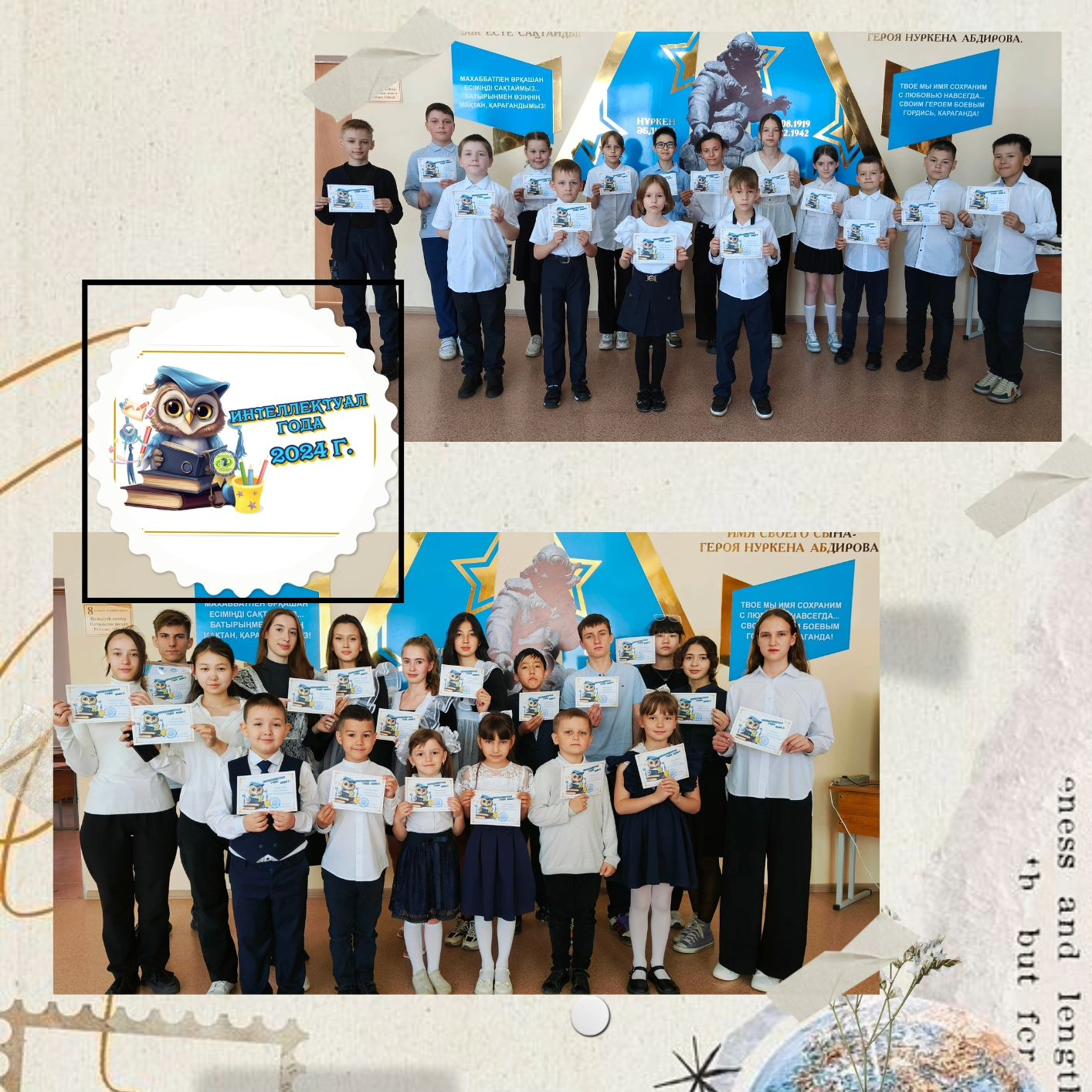 зияткерлік конкурстарға, олимпиадаларға, викториналарға белсенді қатысқан, мектебімізді аудандық, облыстық және халықаралық іс-шараларда дәріптейтін біздің мектептің тамаша, талантты оқушылары. Алдағы жеңістер мен жаңа шыңдар тілейміз!!!